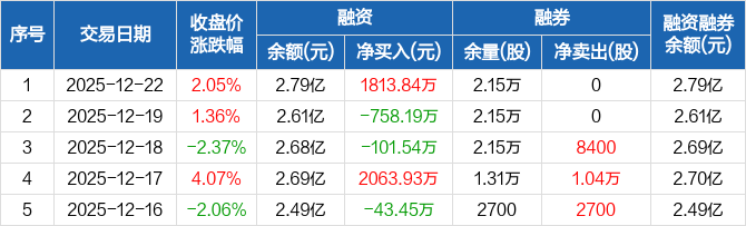 川润股份:融资净买入1813.84万元,融资余额2.79亿元(12-22)
