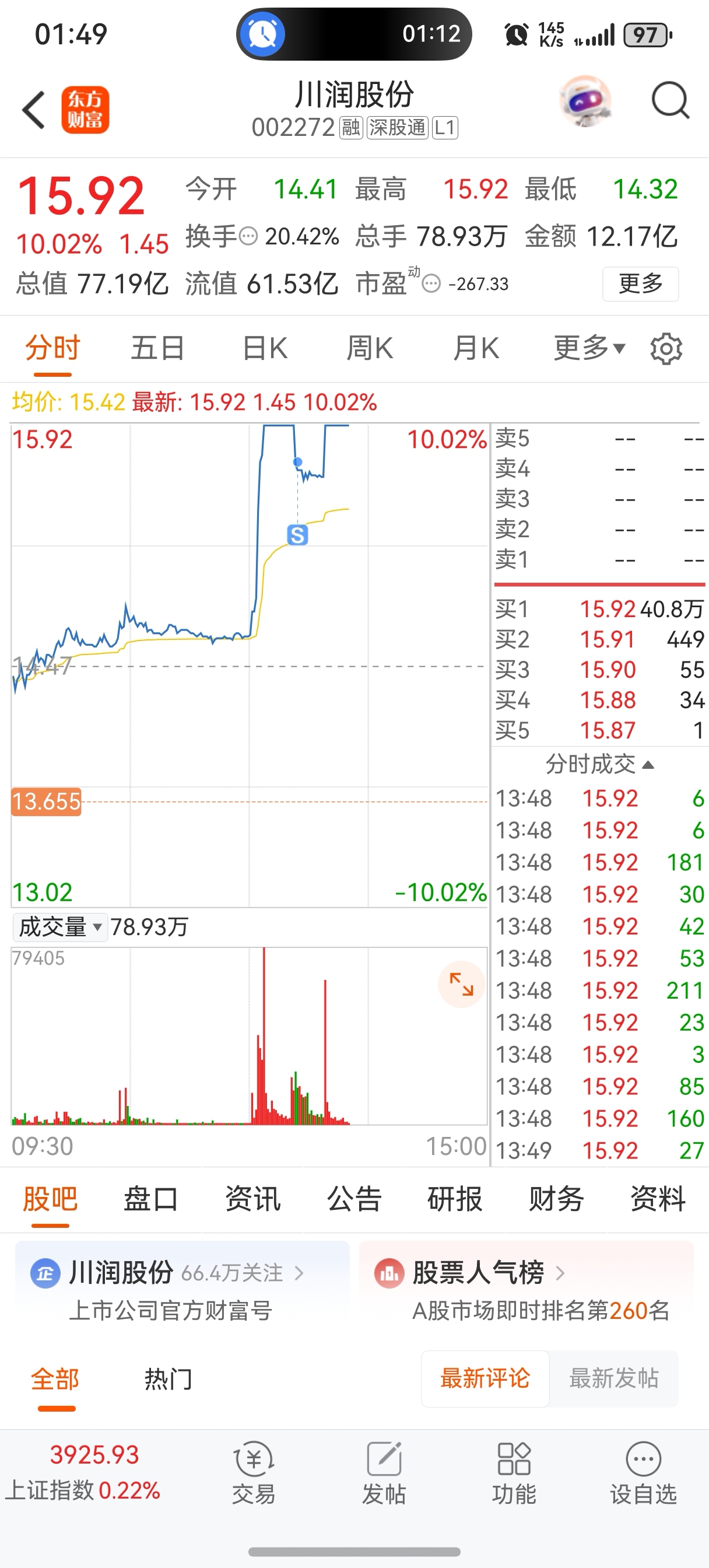 温馨提示: 1.根据《证券法》规定,禁止编造、传播虚假信息或者误导性信息,扰乱证券市场;2.用户在本社区发表的所有资料、言论等仅代表个人观点,与本网站立场无关,不对您构成任何投资建议。用户应基于自己的独立判断,自行决定证券投资并承担相应风险。《东方财富社区管理规定》