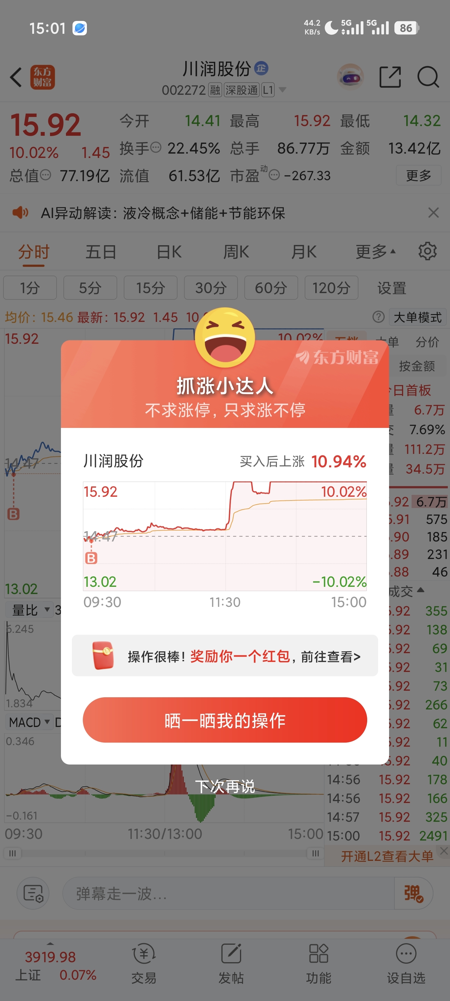 温馨提示: 1.根据《证券法》规定,禁止编造、传播虚假信息或者误导性信息,扰乱证券市场;2.用户在本社区发表的所有资料、言论等仅代表个人观点,与本网站立场无关,不对您构成任何投资建议。用户应基于自己的独立判断,自行决定证券投资并承担相应风险。《东方财富社区管理规定》