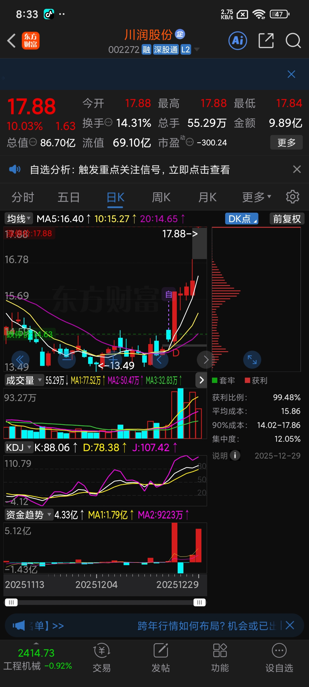 $川润股份(SZ002272)$ 这股选好了,可是没上车……