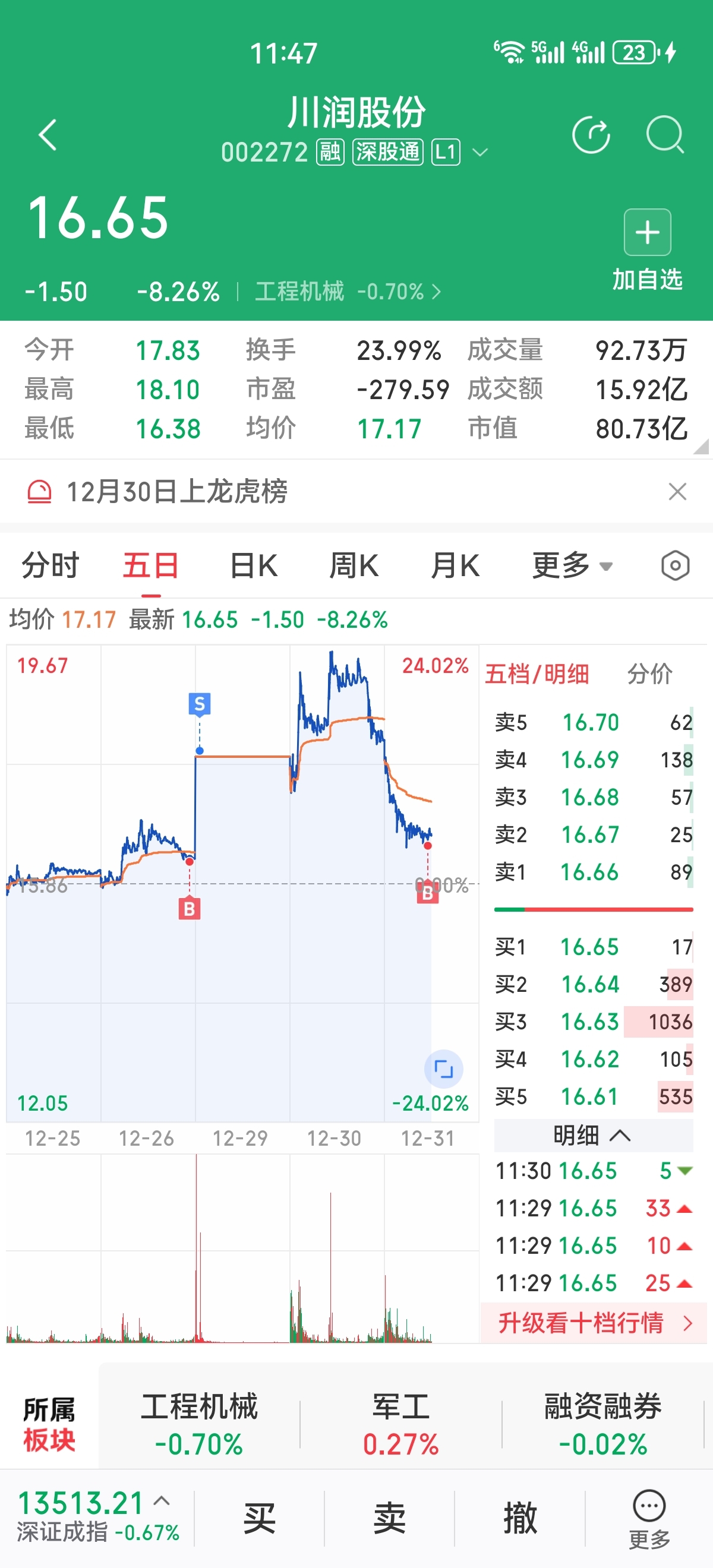 $川润股份(SZ002272)$ 主力,让我看看你的实力