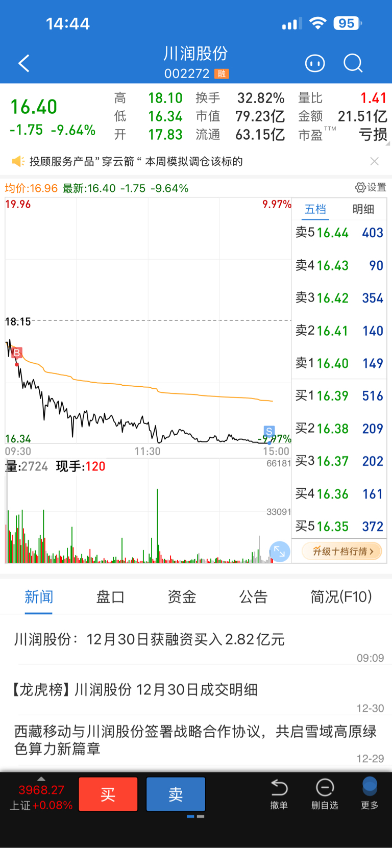 $川润股份(SZ002272)$ 真是专门杀我吧。刚跌停板卖出,立马涨了
