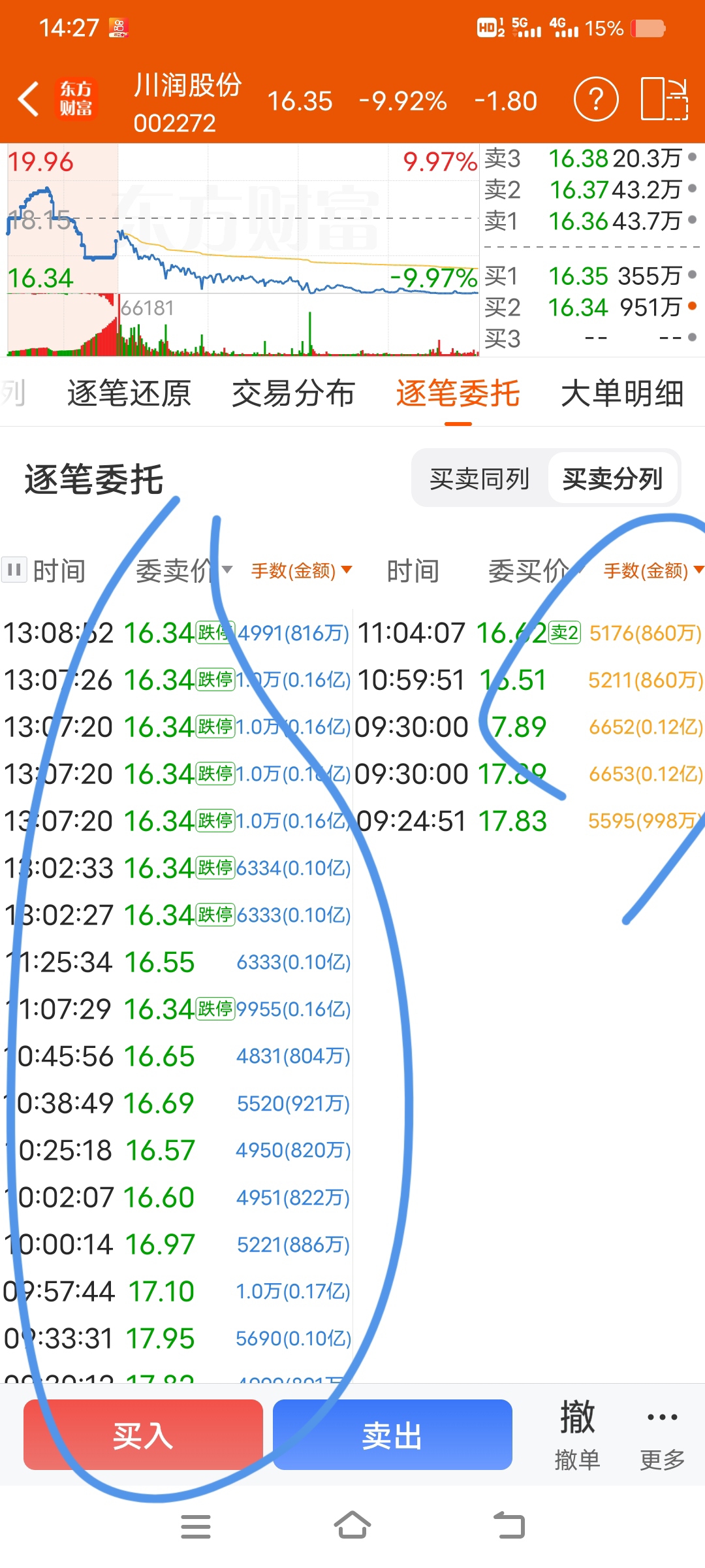 $川润股份(SZ002272)$ 5000手以上大单砸盘。怎么解释?明显的主力逃跑。