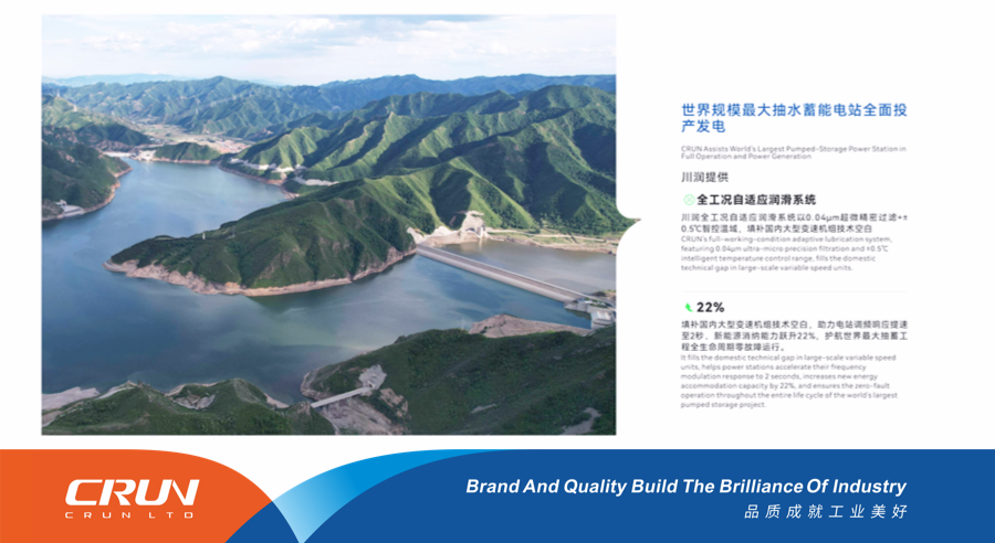 在抽水蓄能这一新型电力系统调节能力的核心环节,川润为当前世界规模最大的国家电网河北丰宁抽水蓄能电站,提供了300MW变速水泵水轮机机组的全套轴承润滑系统,有力支持了电站的全面投产与稳定运行。