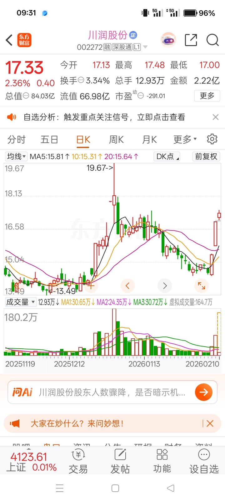 $川润股份(SZ002272)$ 川润17.3附近继续上车开怼,坐稳扶好!等待起飞