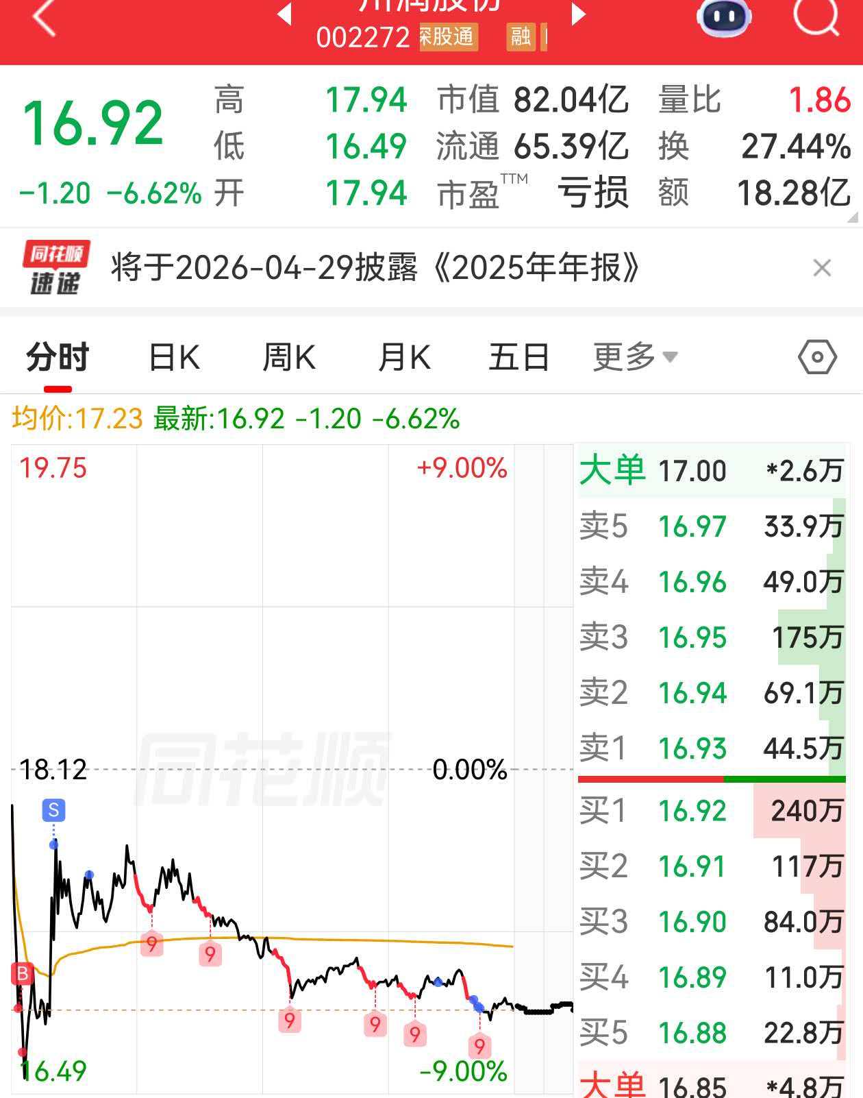 本来挂了18准备再卖一半,结果没上去直接掉了,难受的一批,尾盘6个多点全清了,就