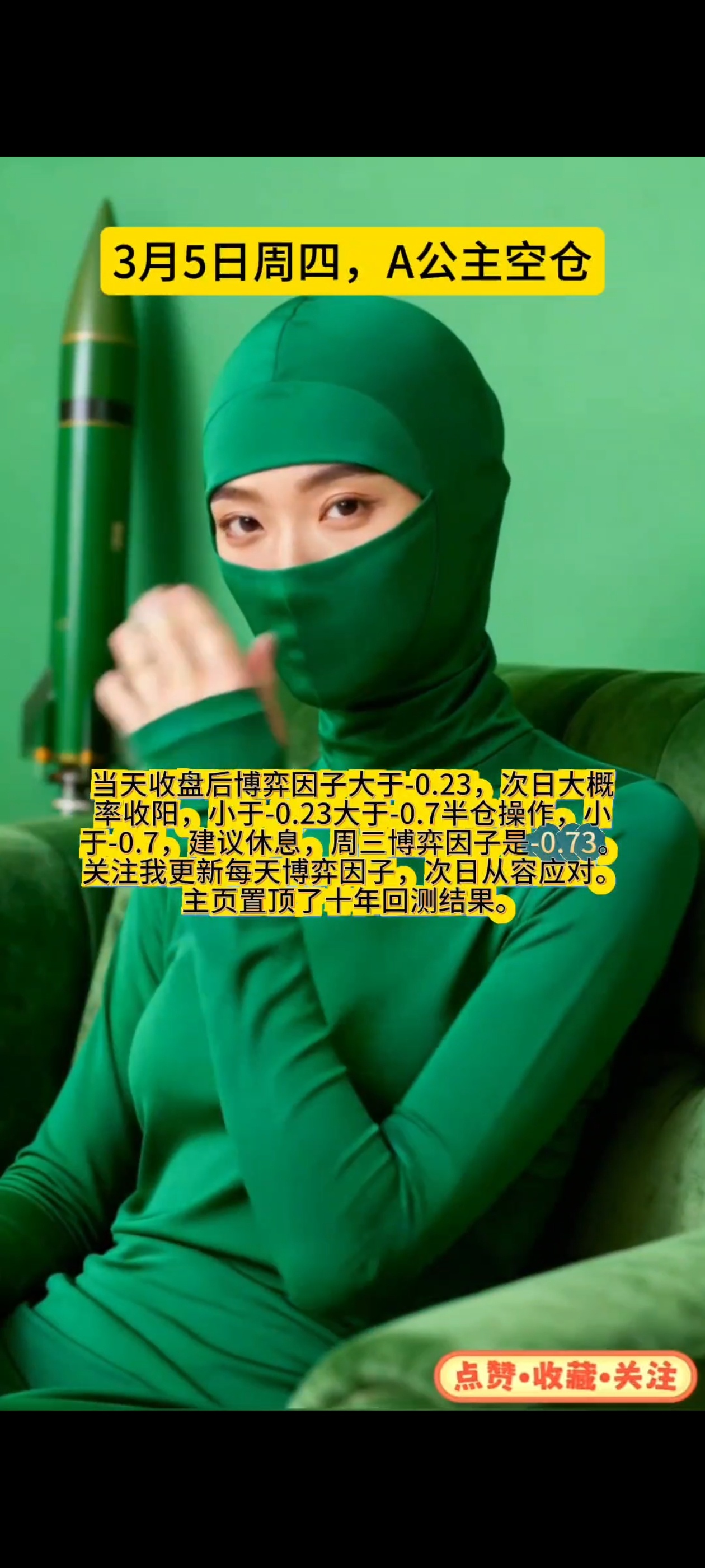最近预判19天对16次,3月5日空仓.主页视频栏置顶了十年回测记录。周3博弈因子