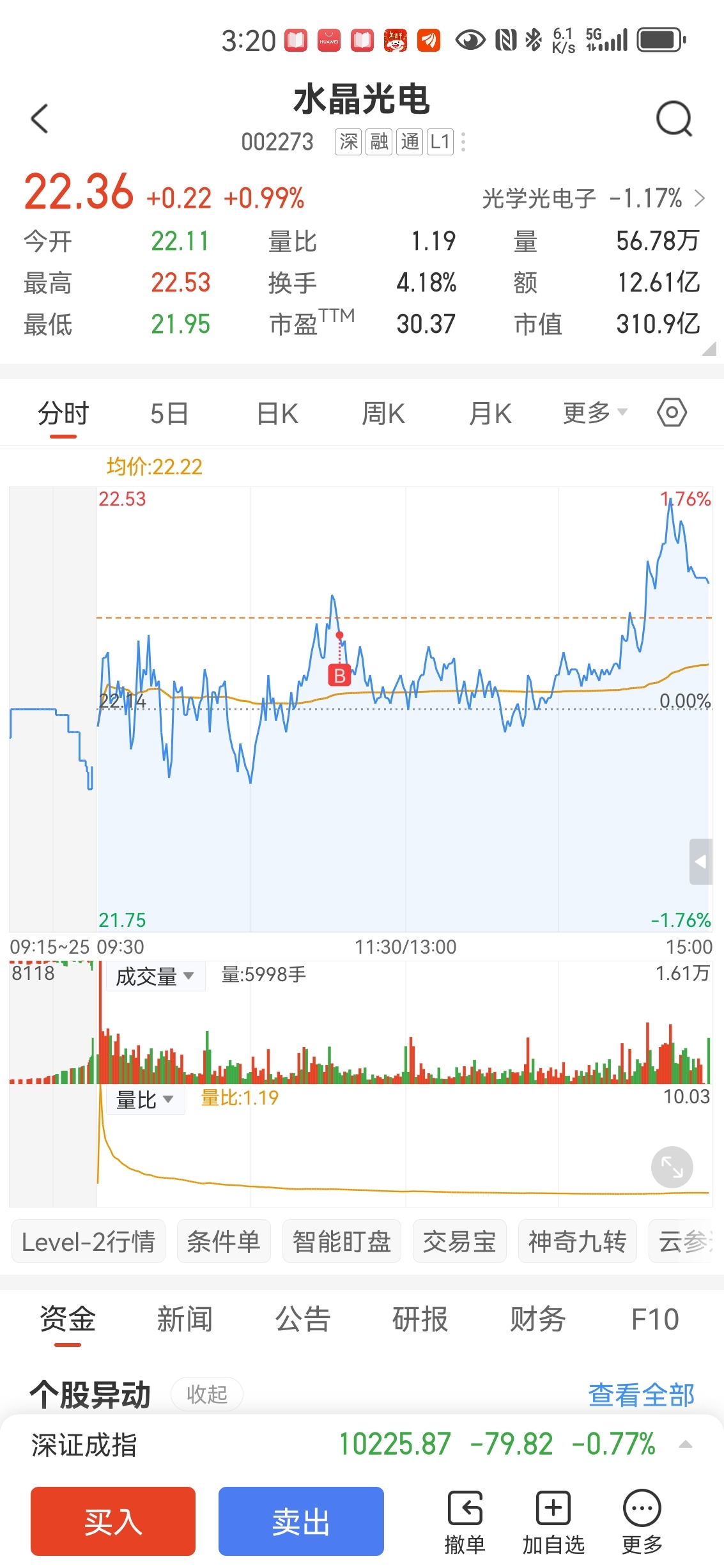 $水晶光电(SZ002273)$ 熊市,就是要追高!追强势股,反着来才有肉吃!