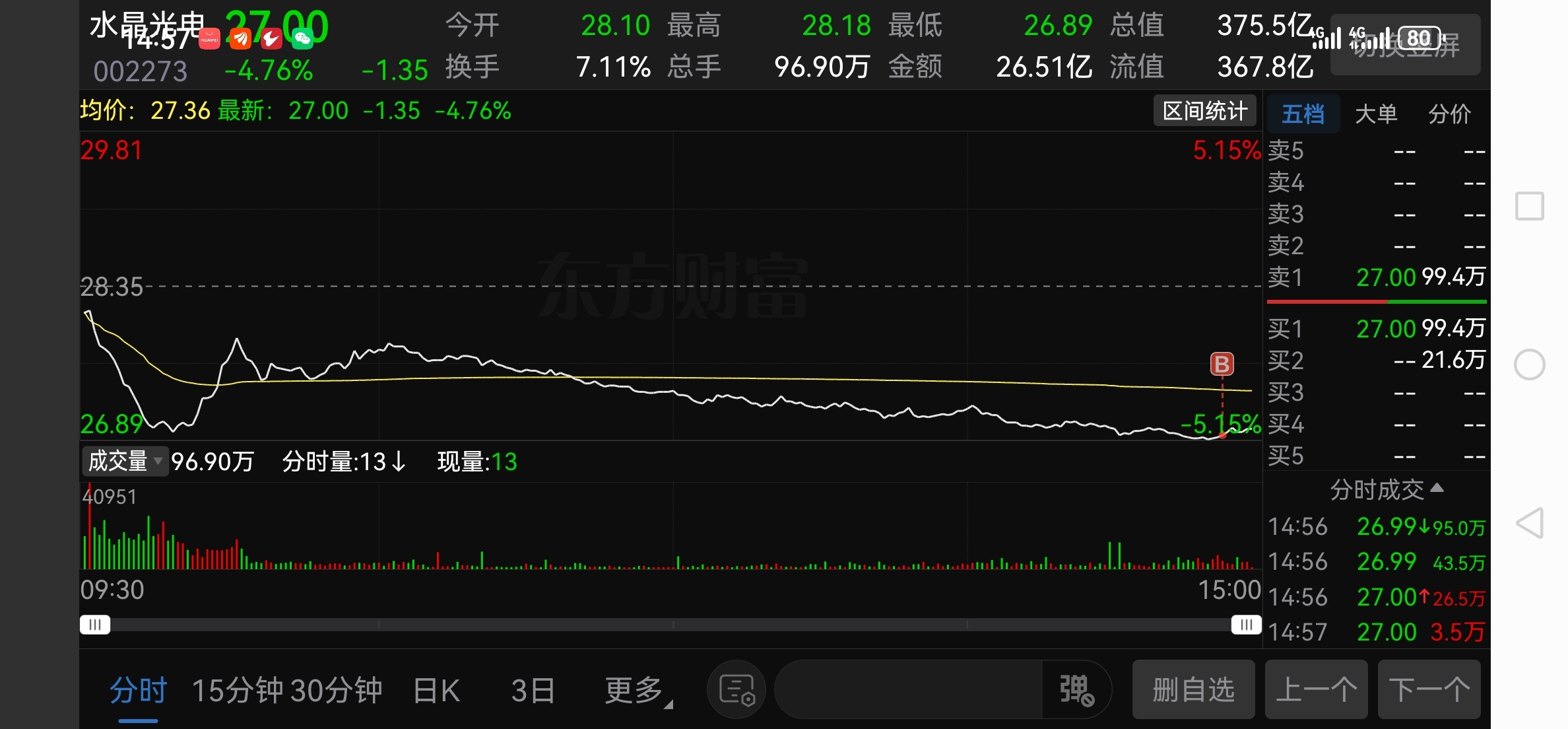 $水晶光电(SZ002273)$ 昨天涨停到今天下跌,博个反弹