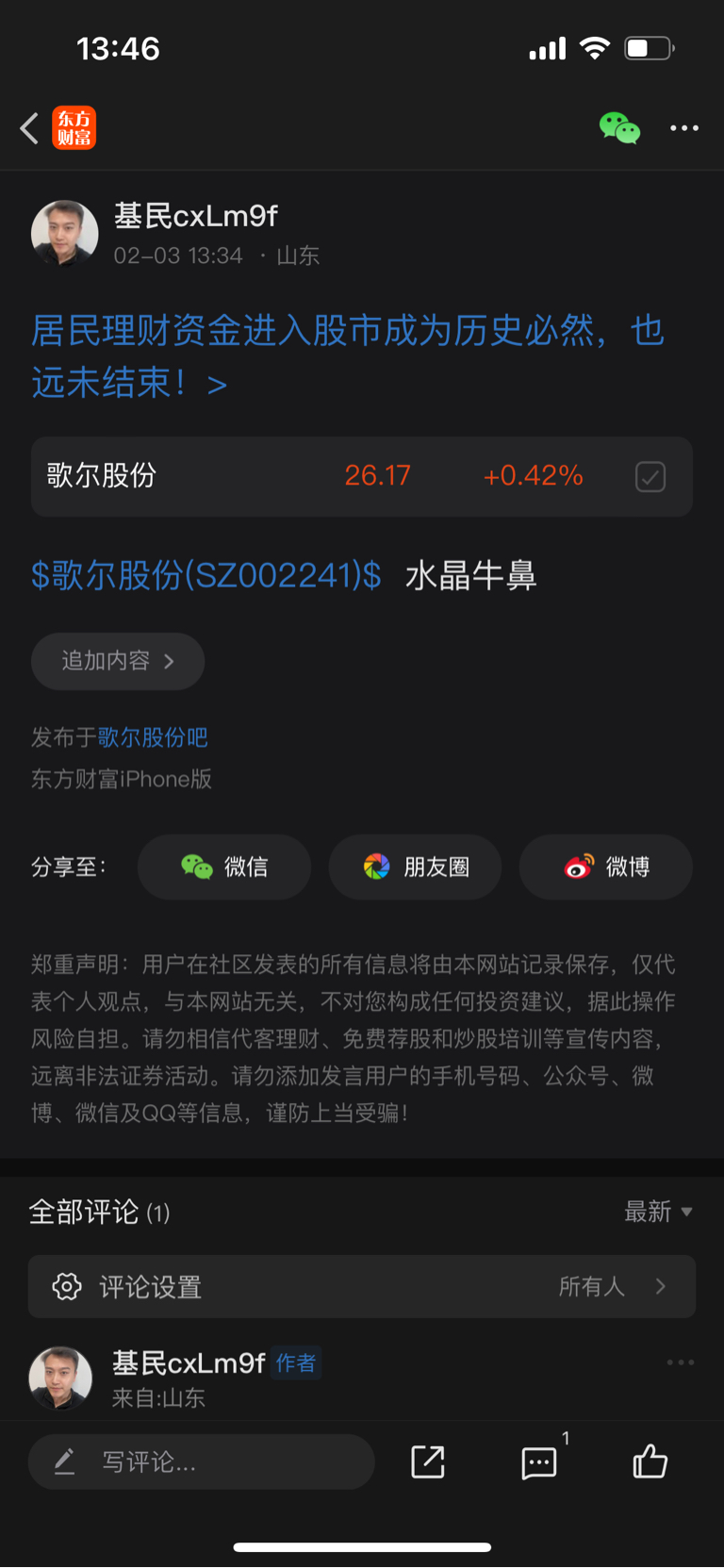 温馨提示: 1.根据《证券法》规定,禁止编造、传播虚假信息或者误导性信息,扰乱证券市场;2.用户在本社区发表的所有资料、言论等仅代表个人观点,与本网站立场无关,不对您构成任何投资建议。用户应基于自己的独立判断,自行决定证券投资并承担相应风险。《东方财富社区管理规定》