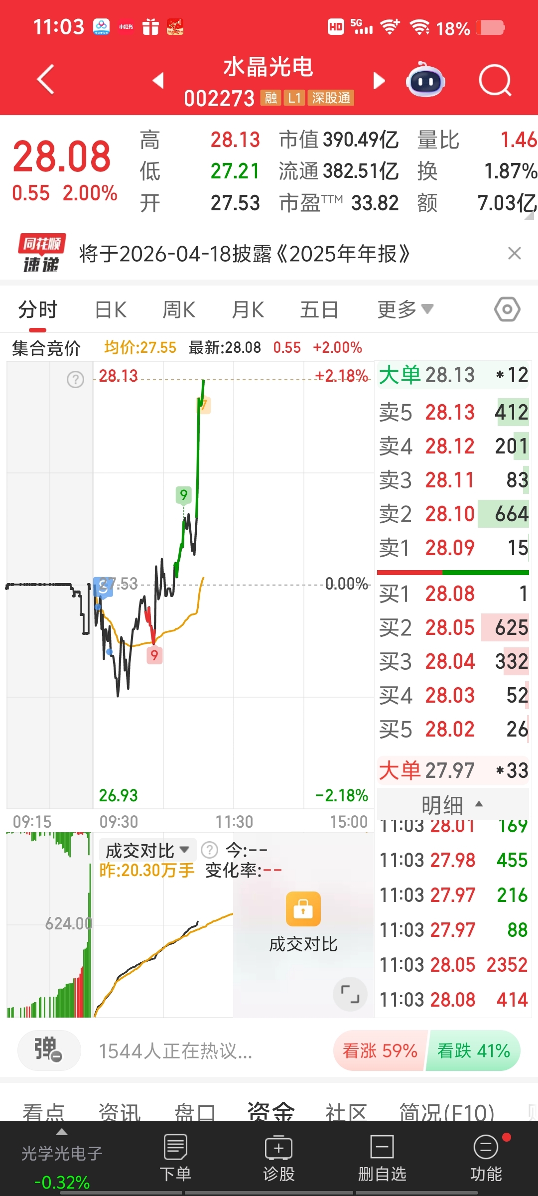 $水晶光电(SZ002273)$ 昨天水下卖飞了,有没有人来安慰我一下