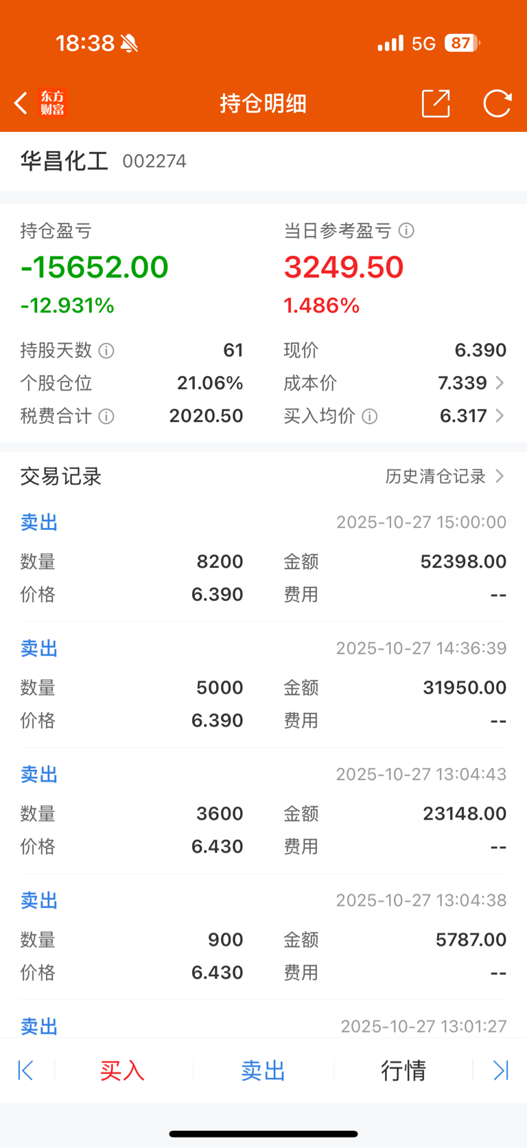 $华昌化工(SZ002274)$ 今天卖了半仓。就等你明天低开接回来。
