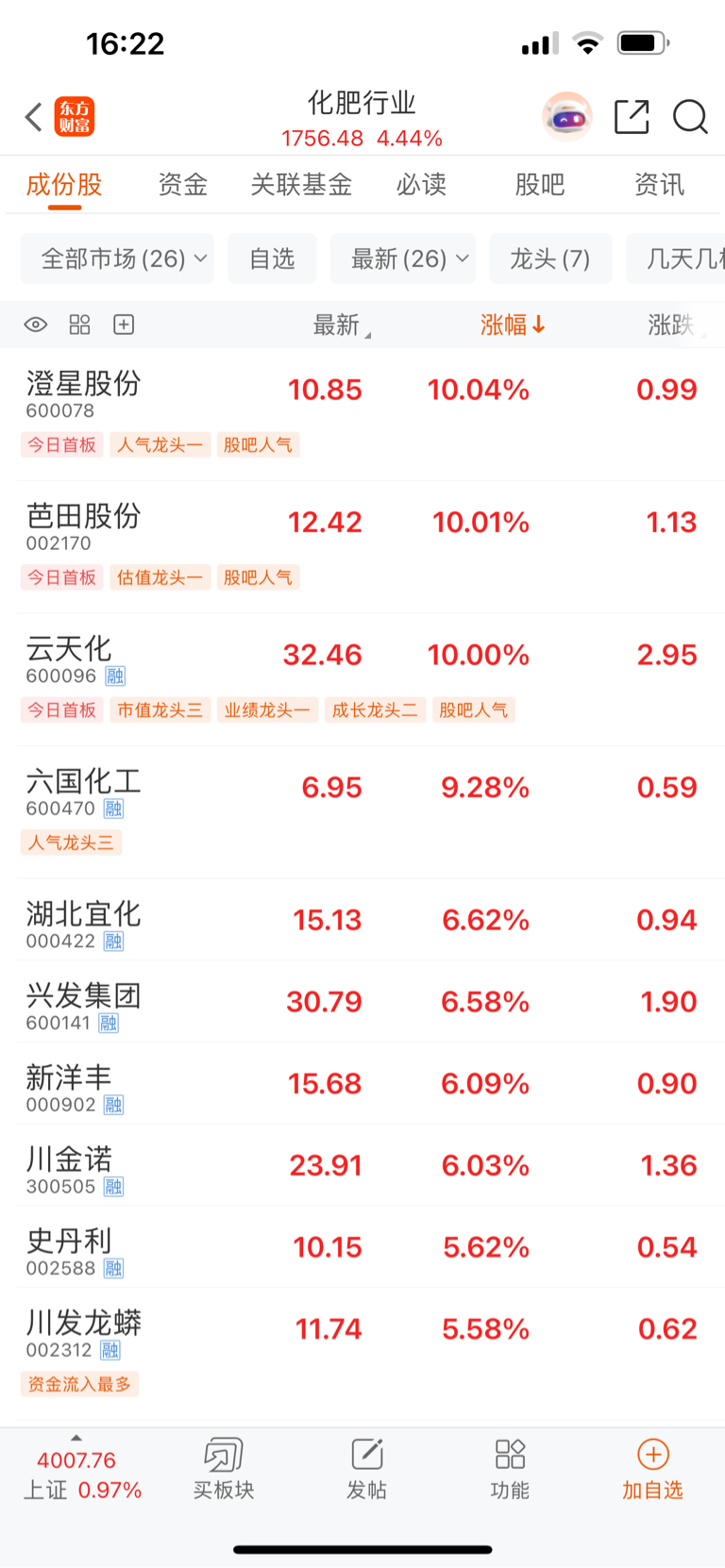 $华昌化工(SZ002274)$ 整个板块都起飞 随便一个最少都是4个点,你就涨一个点?你合理????