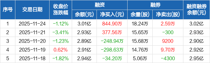 华昌化工:融资净买入844.9万元,融资余额3.01亿元(11-24)