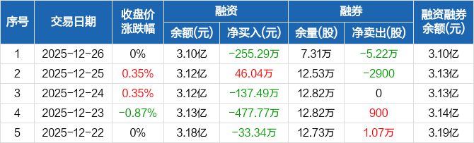 华昌化工:融资净偿还255.29万元,融资余额3.1亿元(12-26)