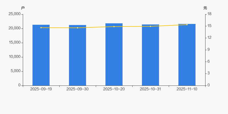 截至2025年11月10日,公司最新总股本为5.88亿股,其中流通股本为5.59亿股。户均持有流通股数量由上期的2.61万股下降至2.59万股,户均流通市值39.78万元。