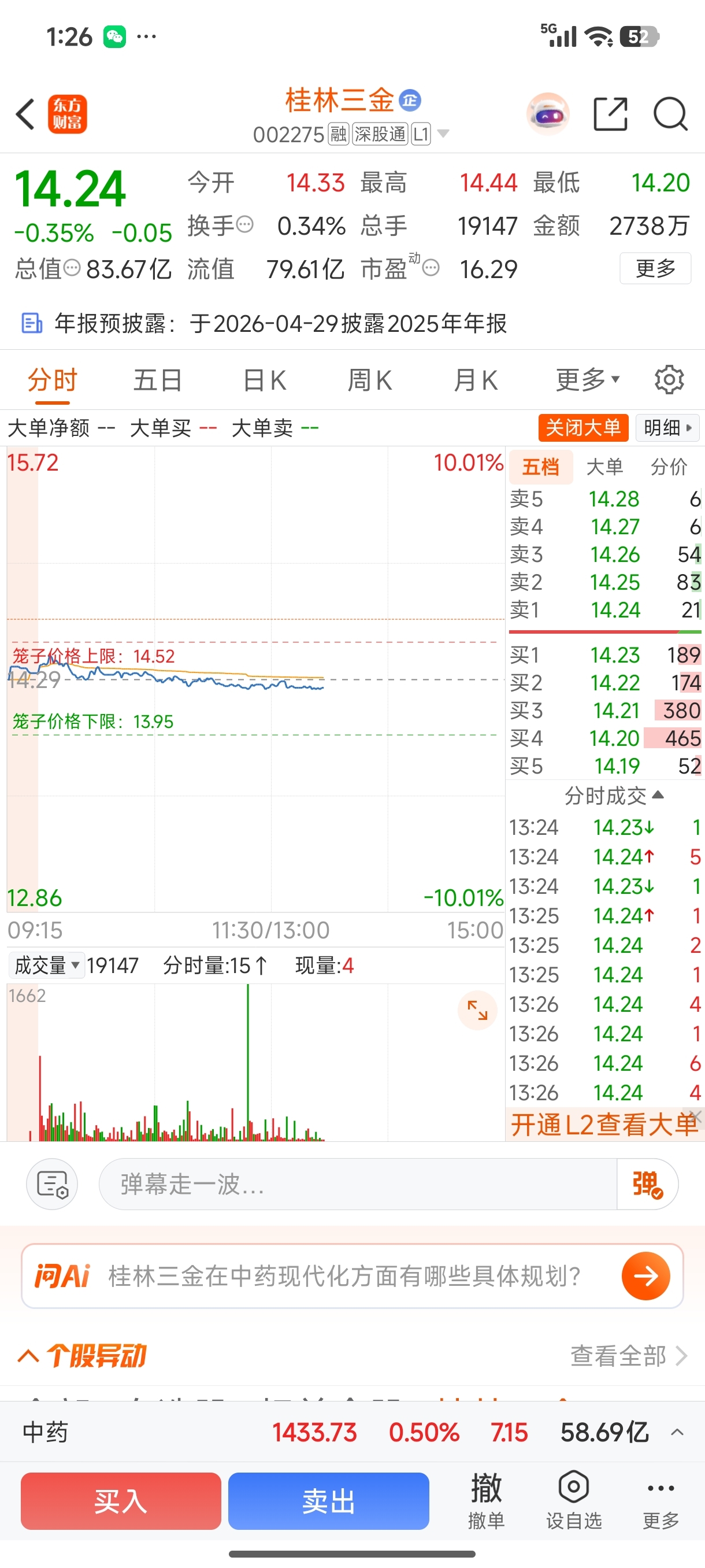 $桂林三金(SZ002275)$ 一手买一手卖,这量化侦探奶奶气死了