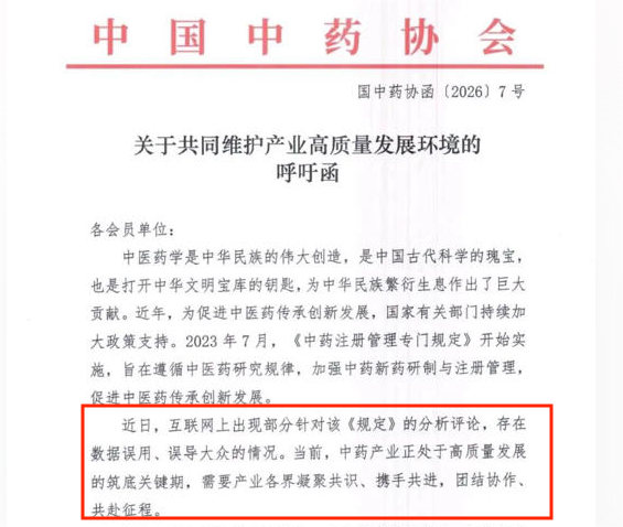中国中药协会2月2日发布的《关于共同维护产业高质量发展环境的呼吁函》指出,当前网络流传的部分解读存在数据误用、误导公众之嫌。