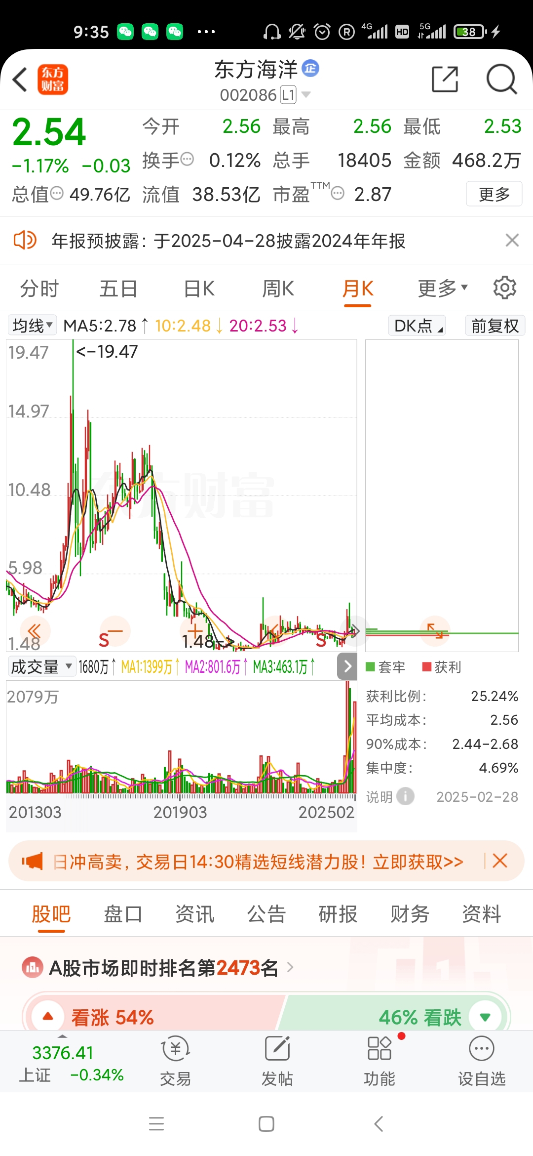 $万马股份(SZ002276)$ $苏州科达(SH603660)$ $东方海洋(SZ002086)$ 。。东方海洋,解禁亏损股。散户别入坑。来主力游资,不支持融券。已跌90%。东方海洋股吧,一直屏蔽我的帖子?