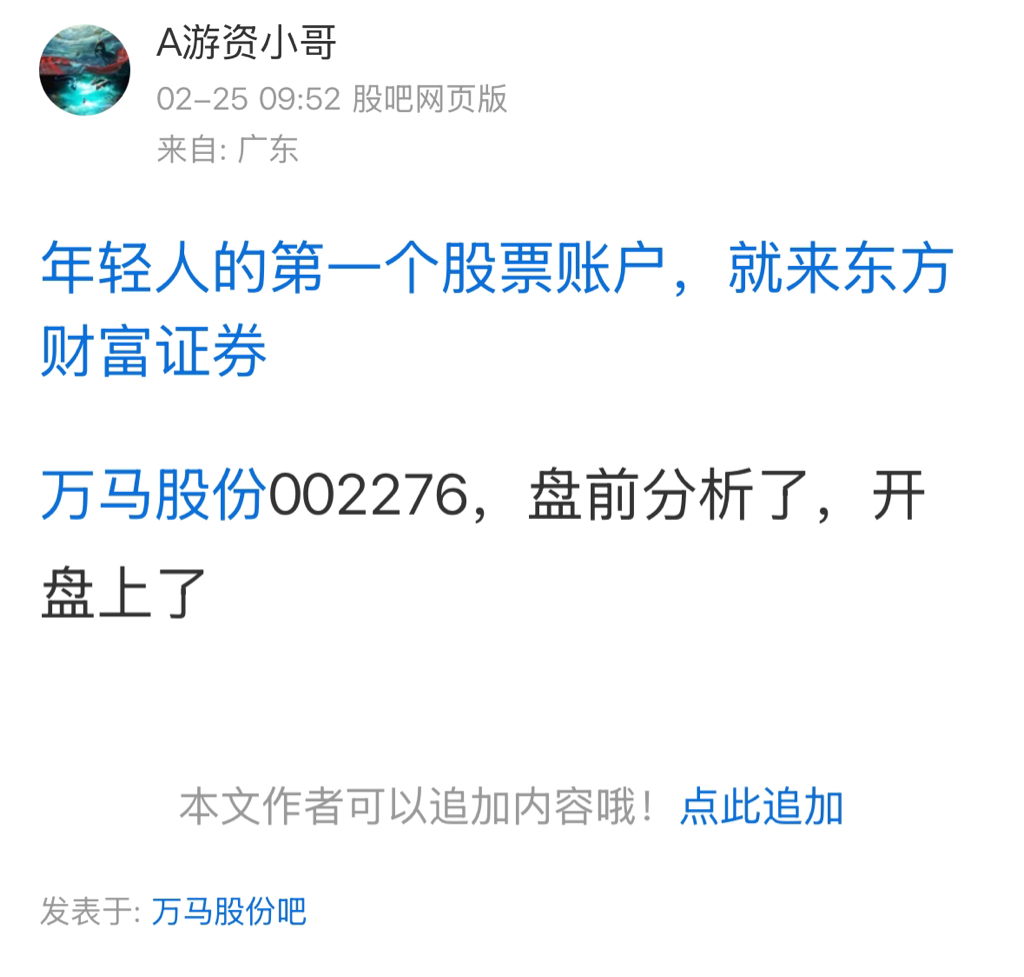 温馨提示: 1.根据《证券法》规定,禁止编造、传播虚假信息或者误导性信息,扰乱证券市场;2.用户在本社区发表的所有资料、言论等仅代表个人观点,与本网站立场无关,不对您构成任何投资建议。用户应基于自己的独立判断,自行决定证券投资并承担相应风险。《东方财富社区管理规定》