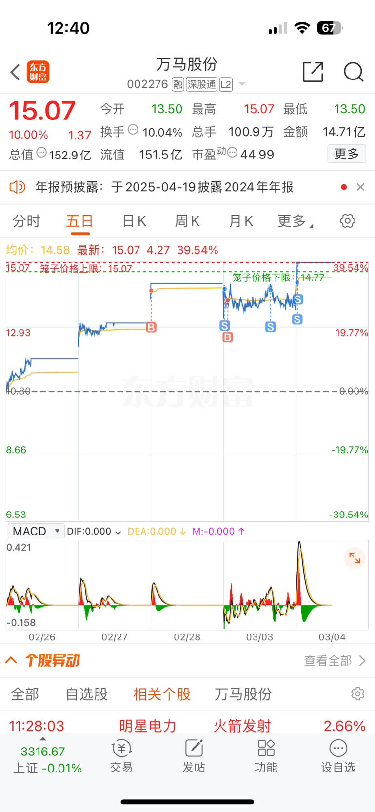 $万马股份(SZ002276)$ #复盘记录# #炒股日记# #实盘记录# 走了,感谢主力,留下的老铁发发财!