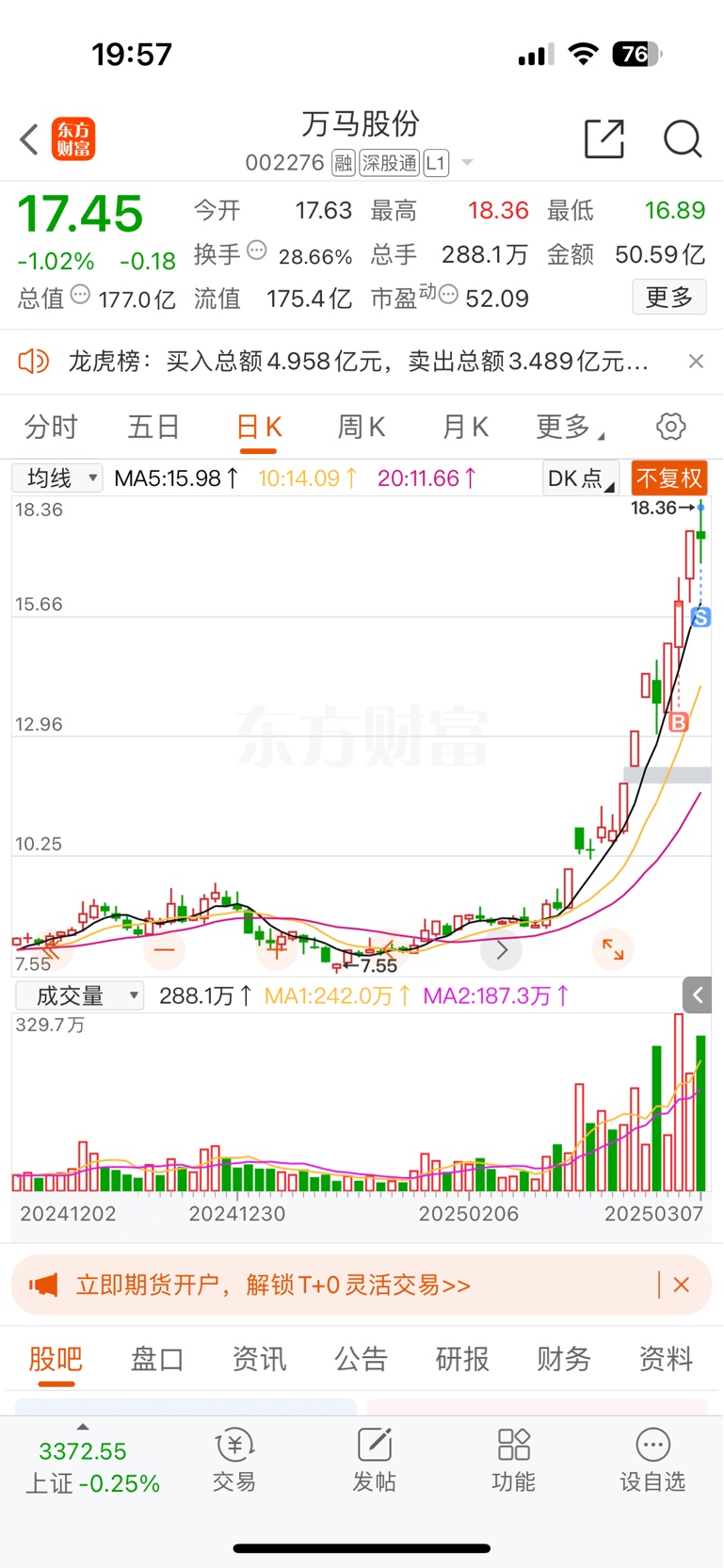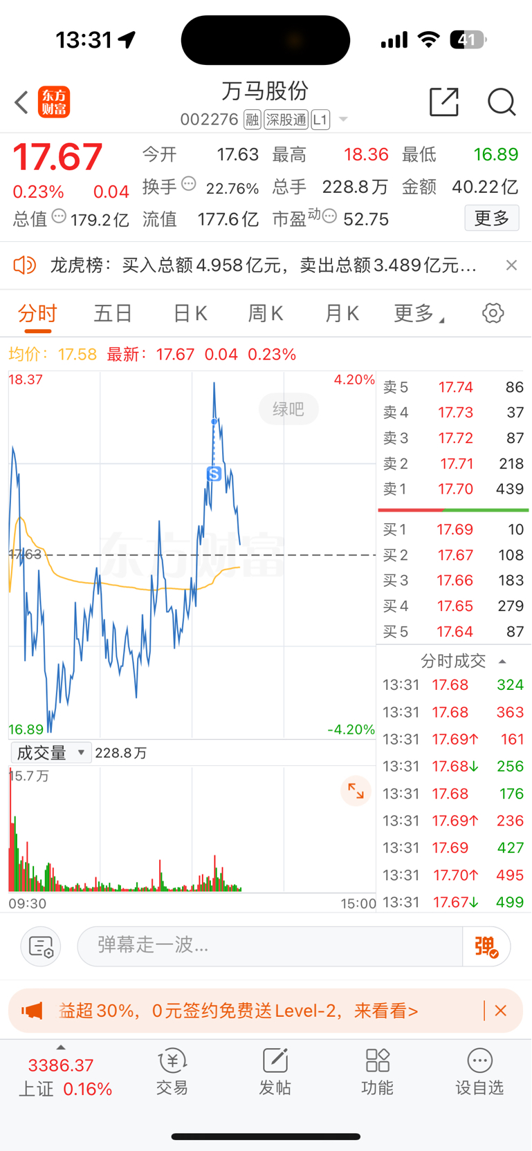 $万马股份(SZ002276)$ 全散户进来,拜拜了您,虽说你很强,但是真的没勇气接回来,散户进来好多,前期进来龙虎榜大哥都在卖出,还会向下,给散户抬轿子那么多量,想想都可怕