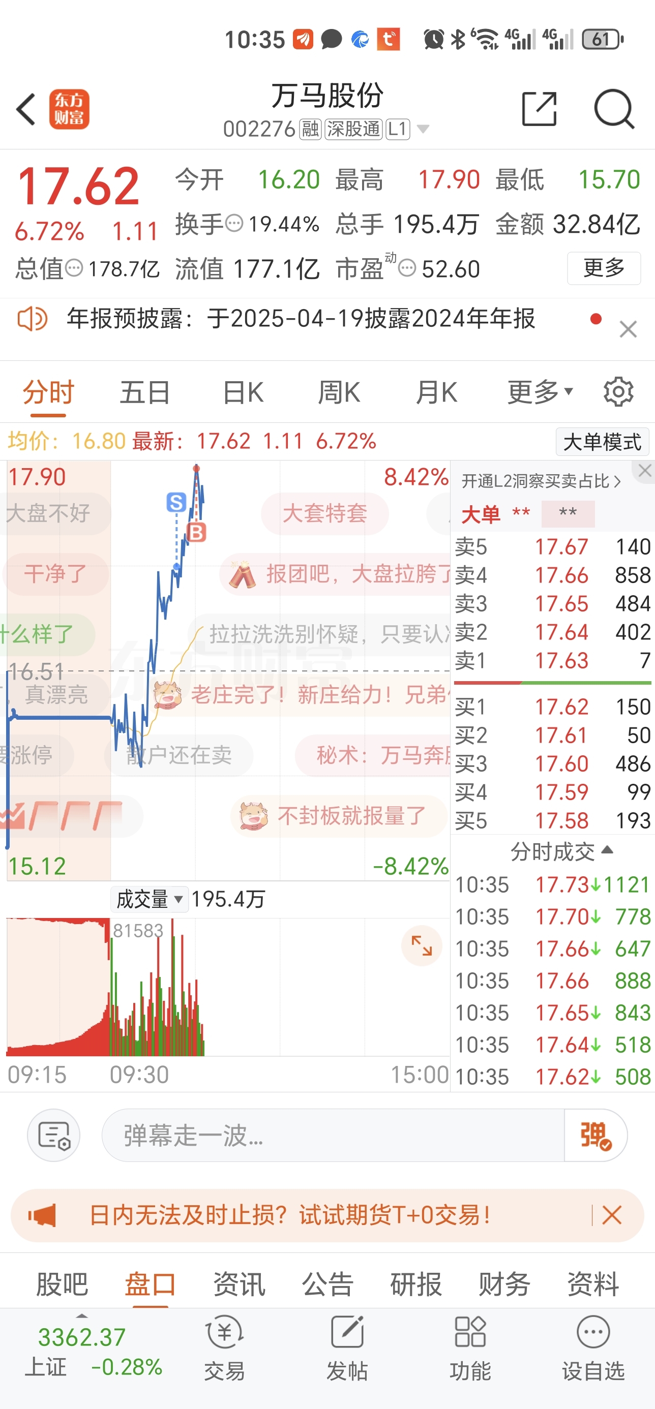 $万马股份(SZ002276)$ 谁有作牛逼!