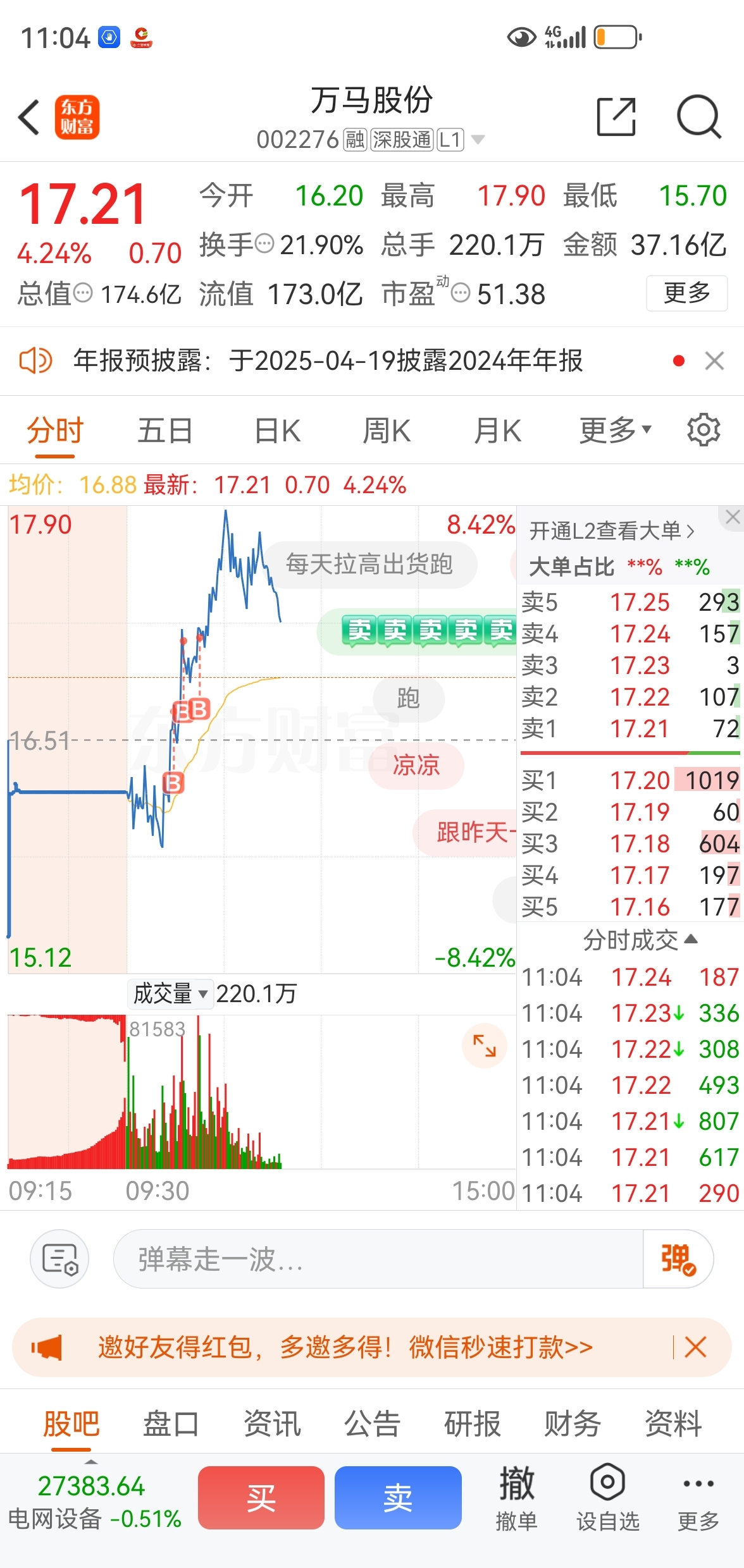 $万马股份(SZ002276)$ 这票能涨停吗?心好慌