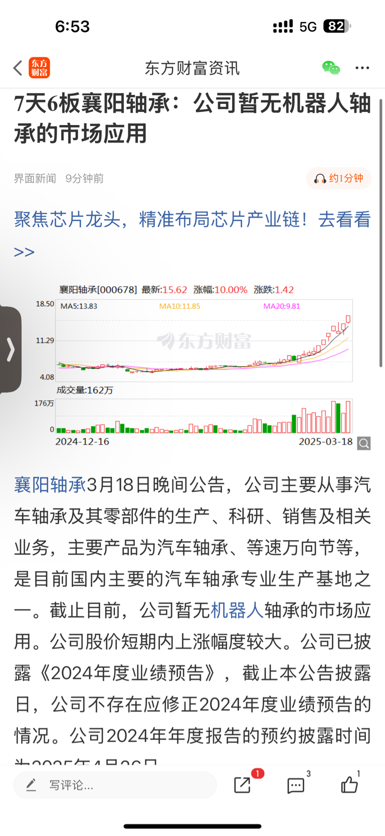 $万马股份(SZ002276)$ 兄弟们在万马股份里面多幸福对比襄阳轴承就知道了,有个金牌董秘,你还想出去哪接飞刀吗?守住筹码,我相信董秘市值管理可以的!