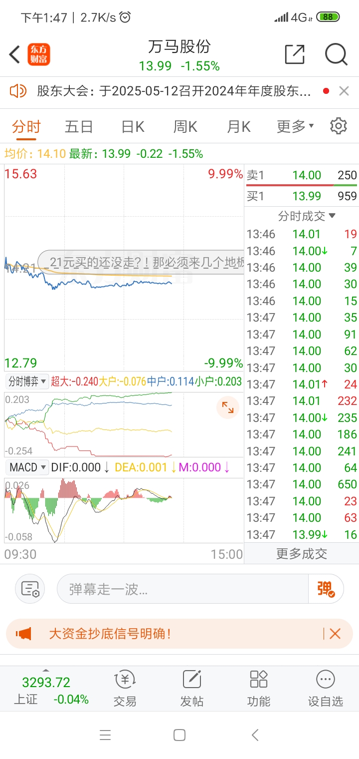 $万马股份(SZ002276)$ 21元买的还没走?!那必须来几个地板让你走#炒股日记# #复盘记录# #实盘记录# #收盘点评#