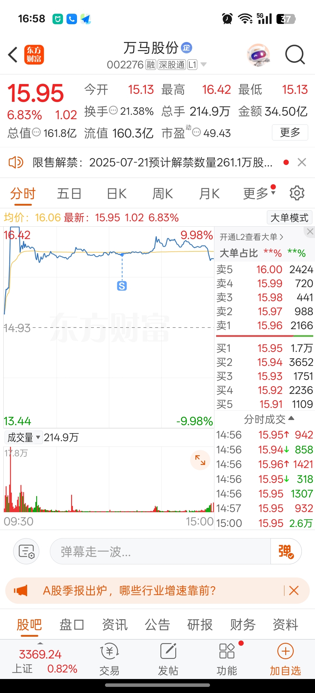 $万马股份(SZ002276)$ 此票今天清仓了,虽然没有卖在最高点但也还可以。观望观望再说