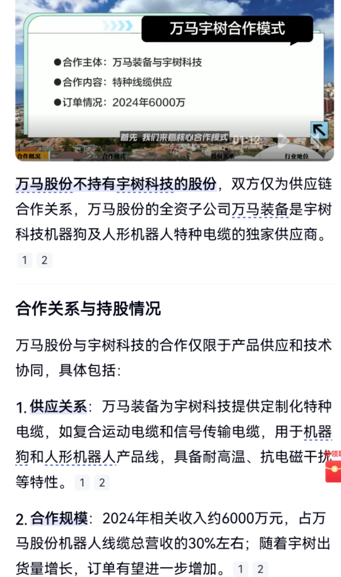 $万马股份(SZ002276)$ 万马股份是宇树科技人形机器人特种超高寿命电缆的独家供应商。