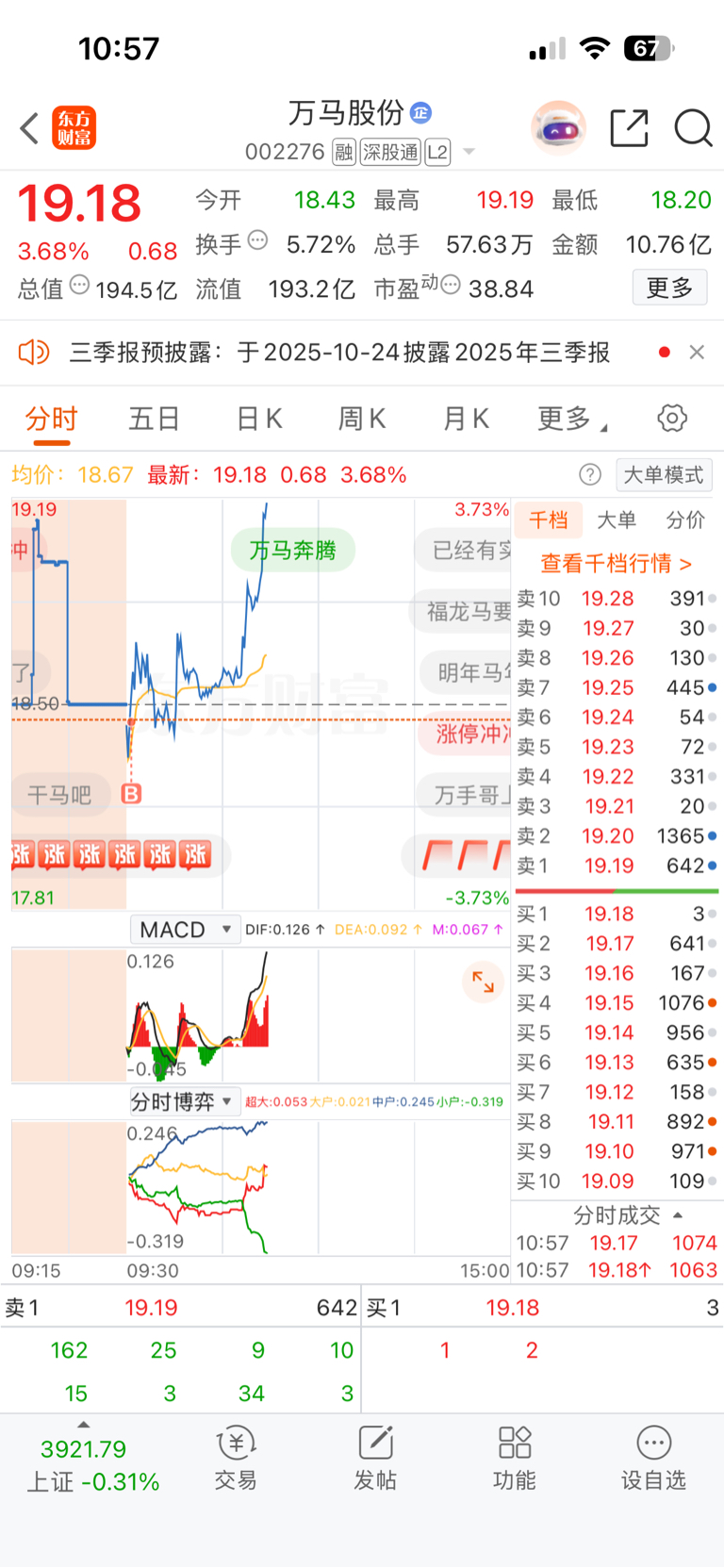 $万马股份(SZ002276)$ 我也是服了自己,一把就梭哈,没给留余地,跌的时候吓死我了