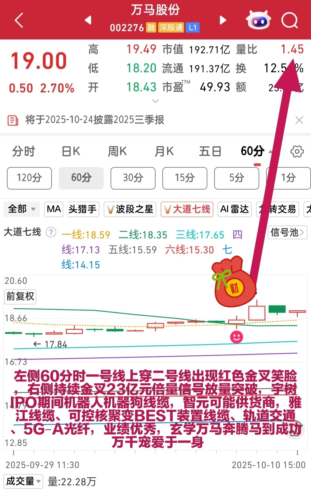 万马奔腾、一马当先~万马股份:左右侧金叉笑脸倍量信号,符合“十五五”高端制造、年