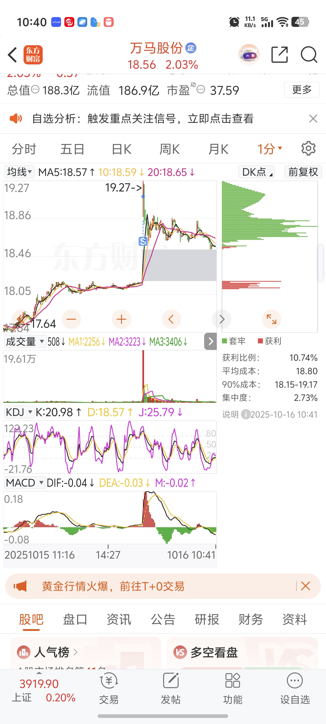 $万马股份(SZ002276)$ 再说一次看不懂分时的人,这就是典型的急拉慢跌,最起码把获利盘这一一节杀出去,等到18.3再看,别浪费时间了