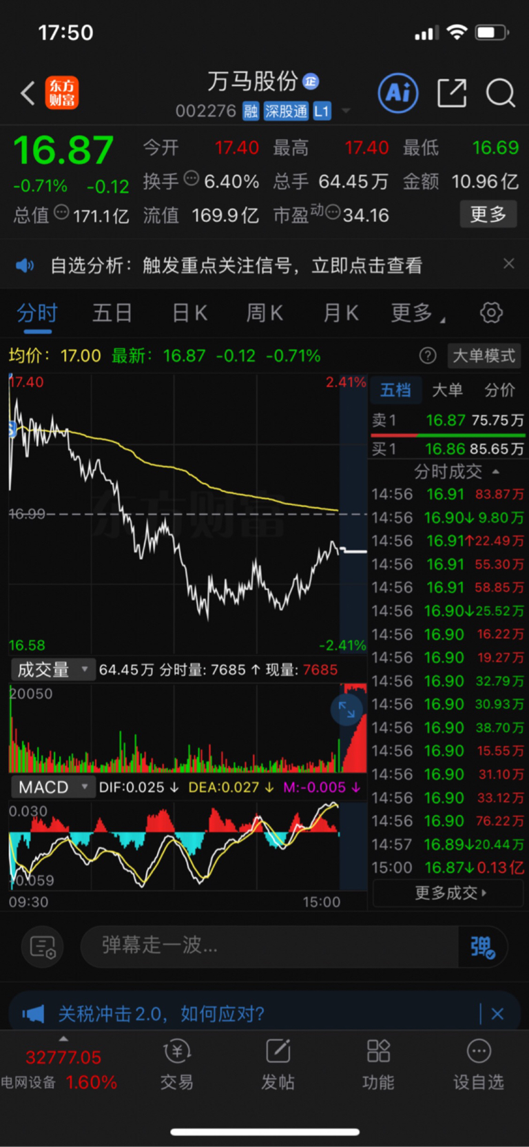 $万马股份(SZ002276)$ 尾盘买早盘卖,稳稳地