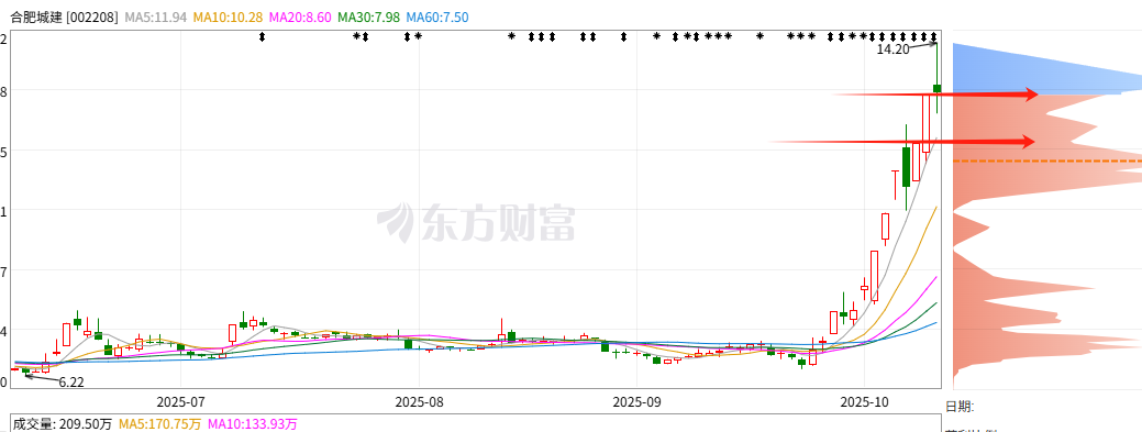 合肥城建002208:间接投Z长鑫科技,昨天拿他还有一个原因是当下市场在缩量的,这就会成就这些聚焦的标的,越是腰高度就越不限,大有能源当然是首选,但是这种加速的已经不好拿,合肥昨天尾盘虽然掉下来了,但是前面是一路换手上来的,所以今天也不至于太过难堪,如果高开就会有新的字金来接力的,如果低开,只要不是太过分,回踩5均之后就会继续冲高,届时就看冲高的力度来做处理即可。