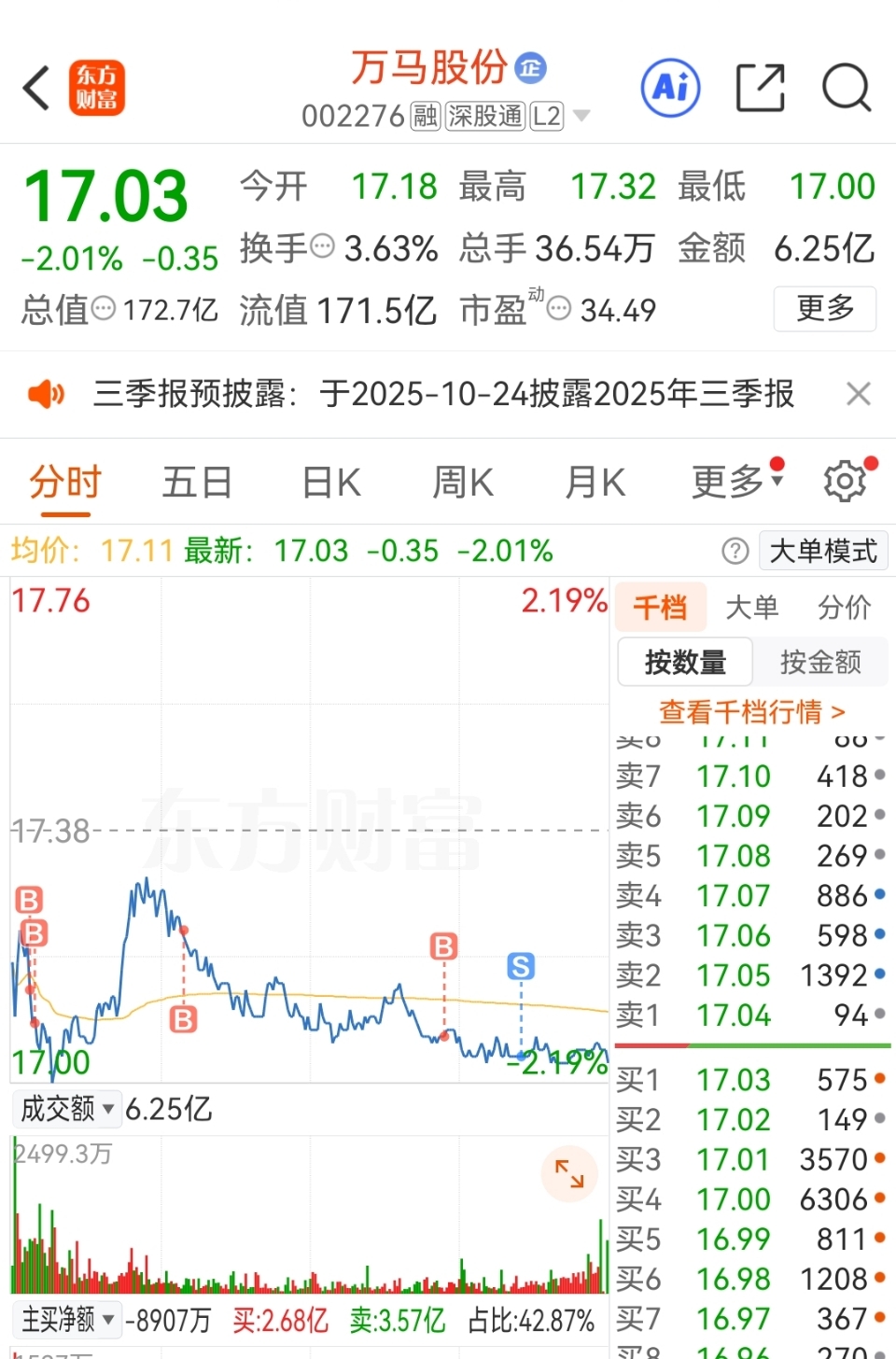 $万马股份(SZ002276)$ 各位亲戚们再见了