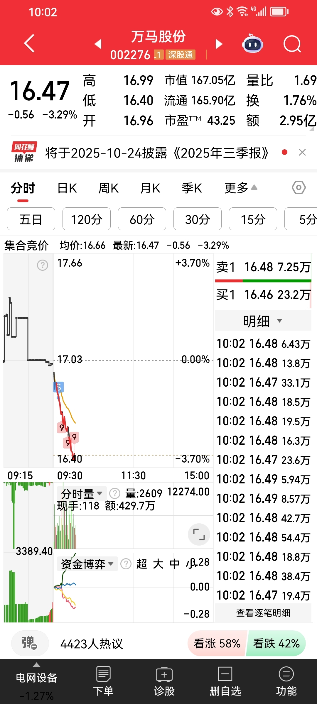 $万马股份(SZ002276)$ 这样就是顺势下跌,越跌越跌,昨天买错了,出现失误,今天赶紧卖出去