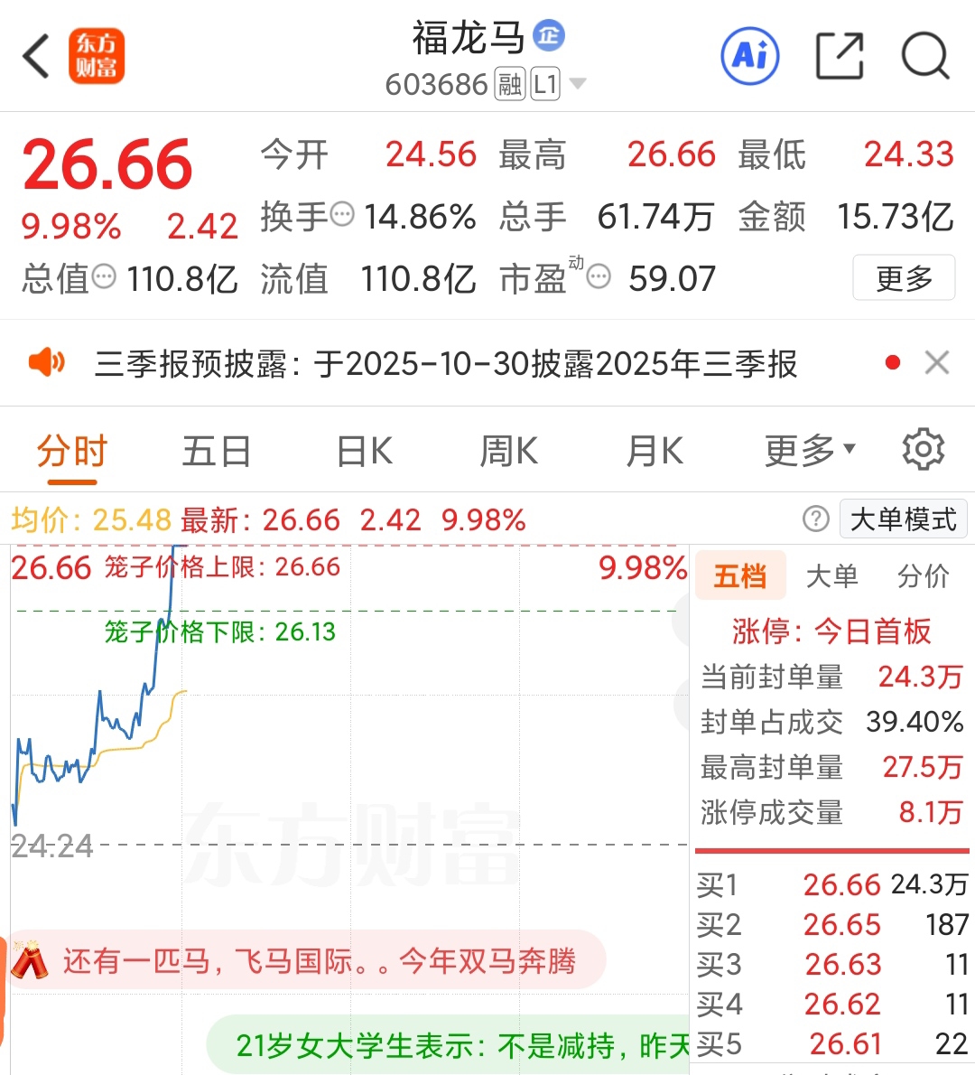 这小马哥不行,福龙马都减持一样涨停