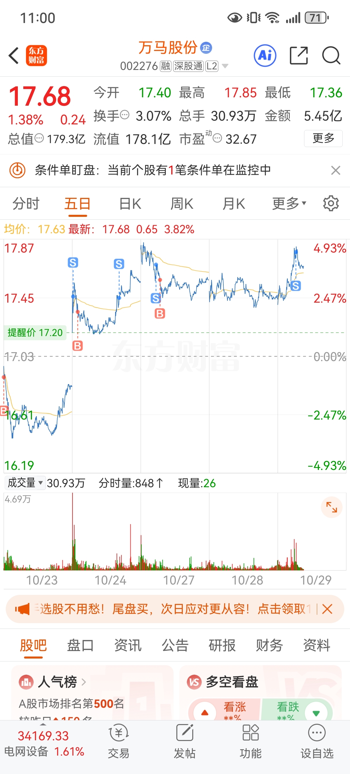$万马股份(SZ002276)$ 家人们我要不要买回来