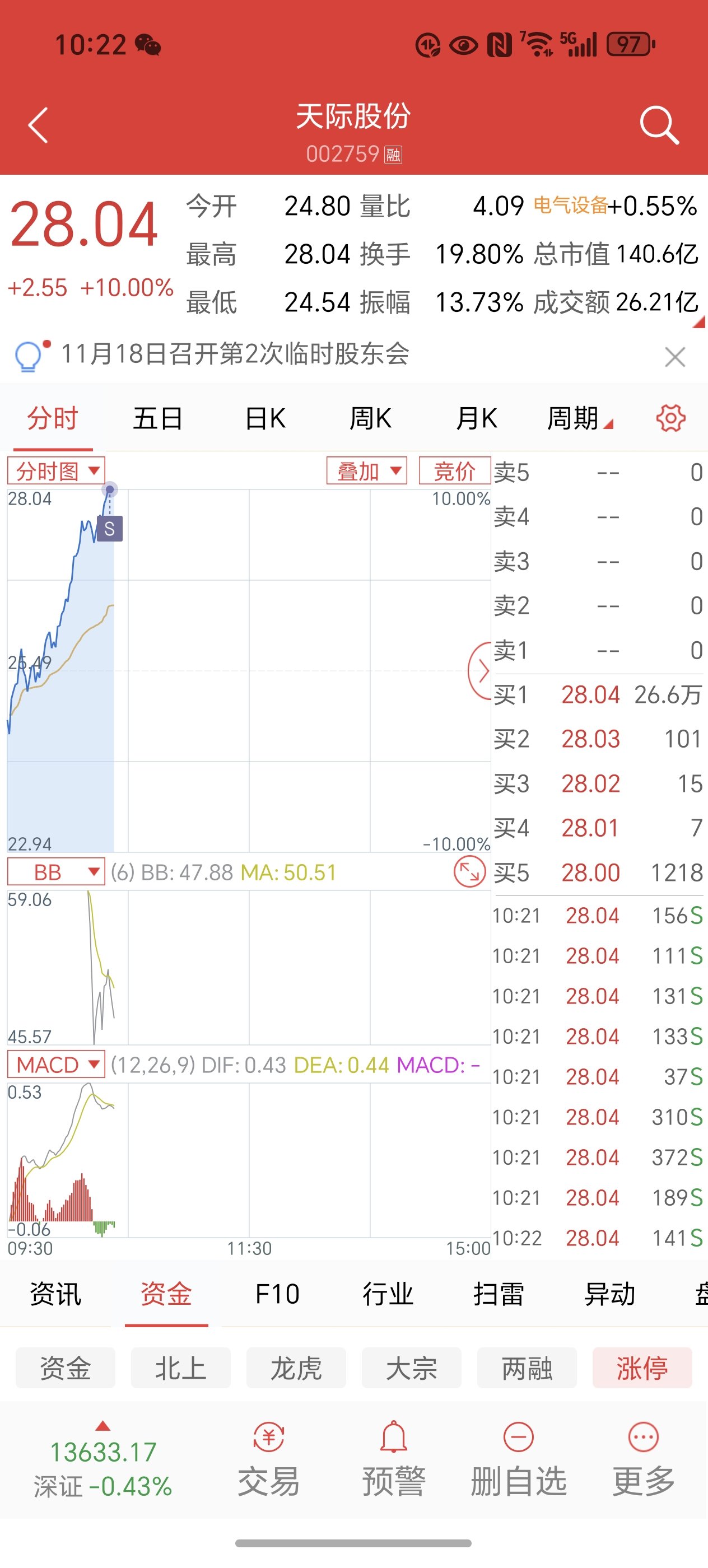 $万马股份(SZ002276)$ 我是不会做多一只我没底仓的股票,请看清楚我是4月25号来的!还有那些说手续费的,因为你本金少才考虑手续费,我不需要考虑,我涨一个点的收益,是我手续费的300倍,我为什么要像你那样在乎手续费,自然我买股票只在乎自己赚不赚