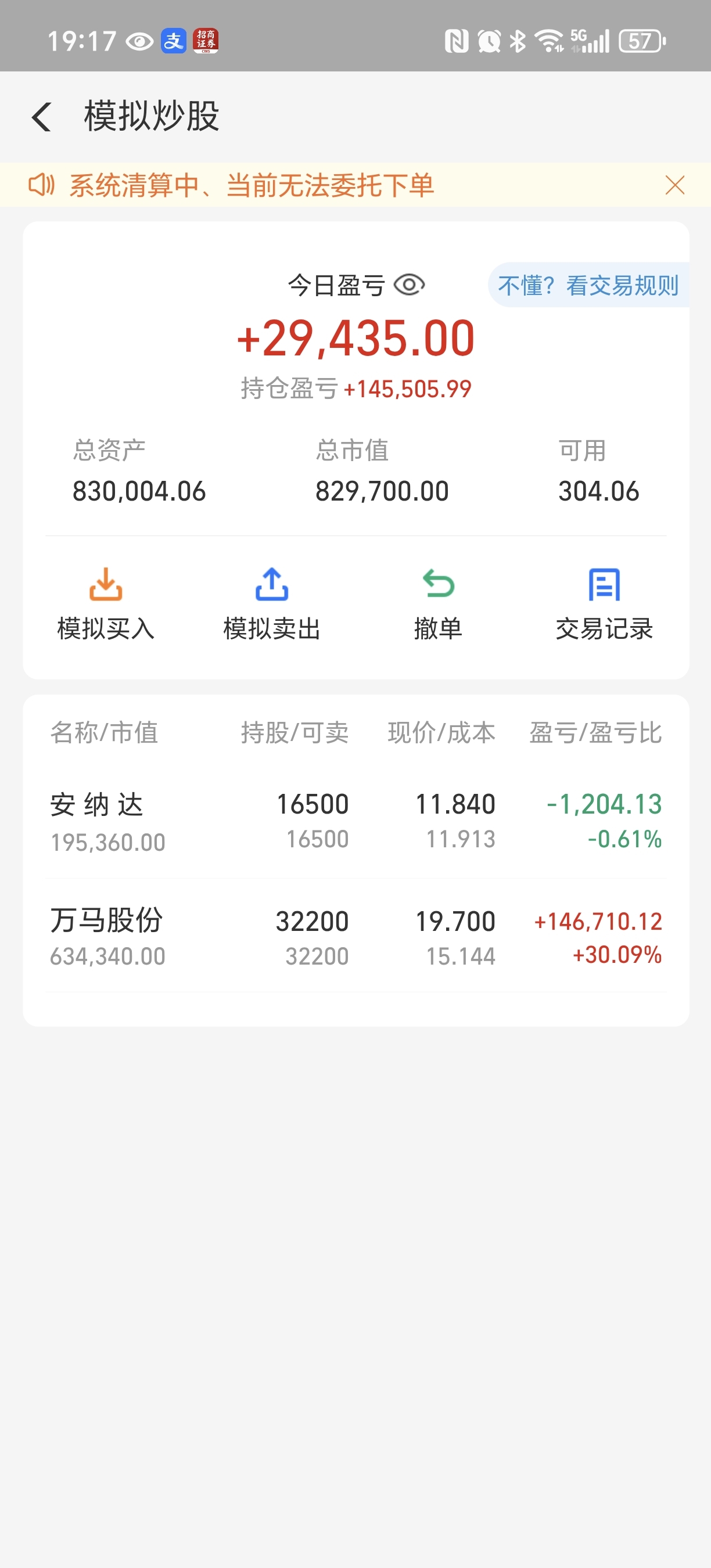 $万马股份(SZ002276)$ 支付宝里的模拟炒股