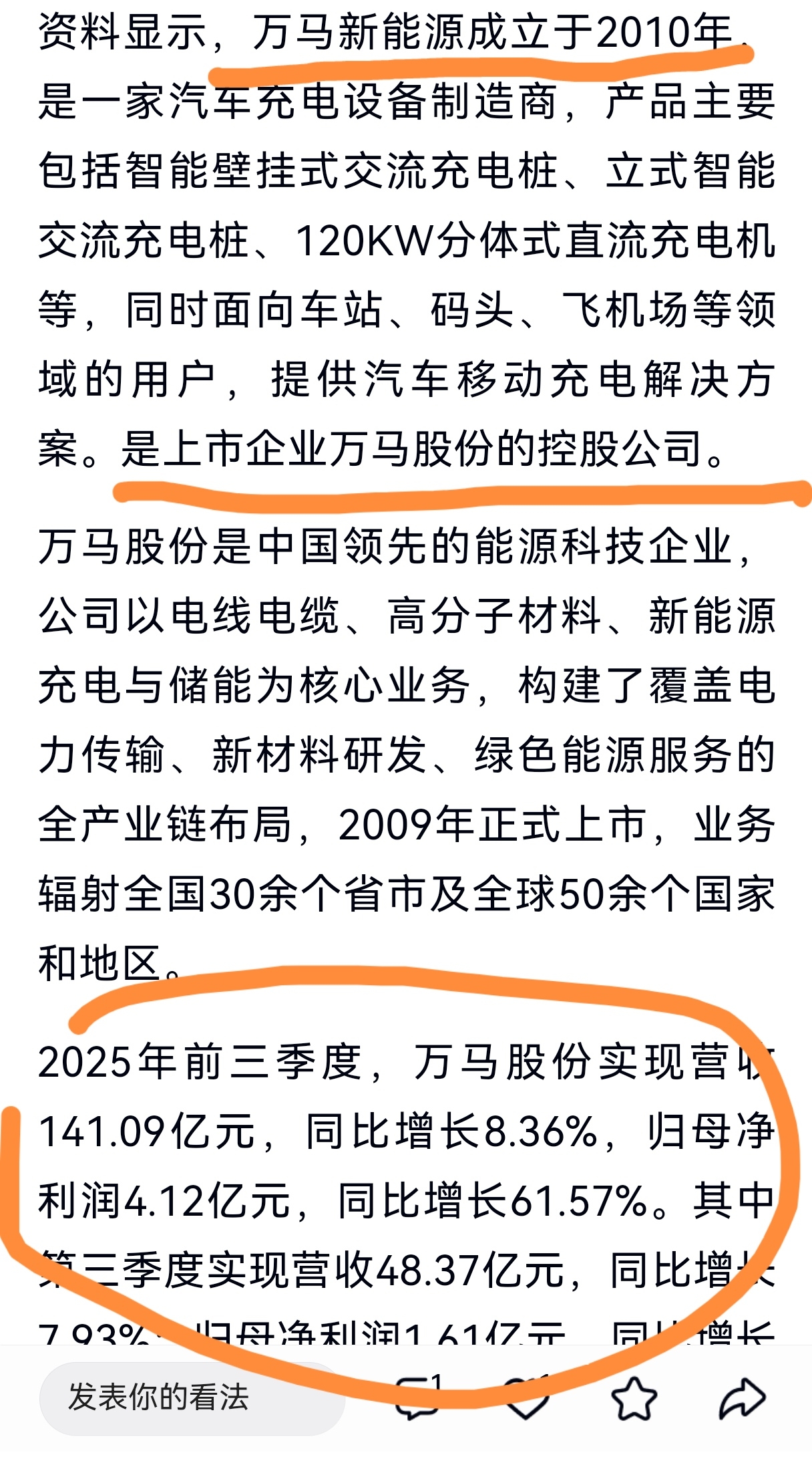 $万马股份(SZ002276)$ 周一涨停,子公司万马新能源19亿储能项目开工。