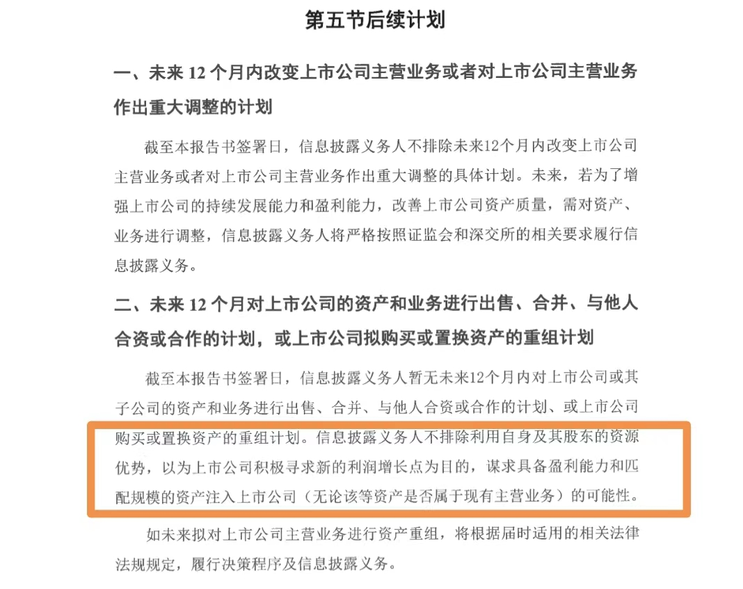 3、结合此前划转协议公告,曾提及:“不排除未来12个月改变上市公司主营业务或做出重大调整的具体计划;未来不排除利用资源优势,谋求资产注入的可能性;如未来拟对上市公司主营业务进行资产重组,将依规披露。”