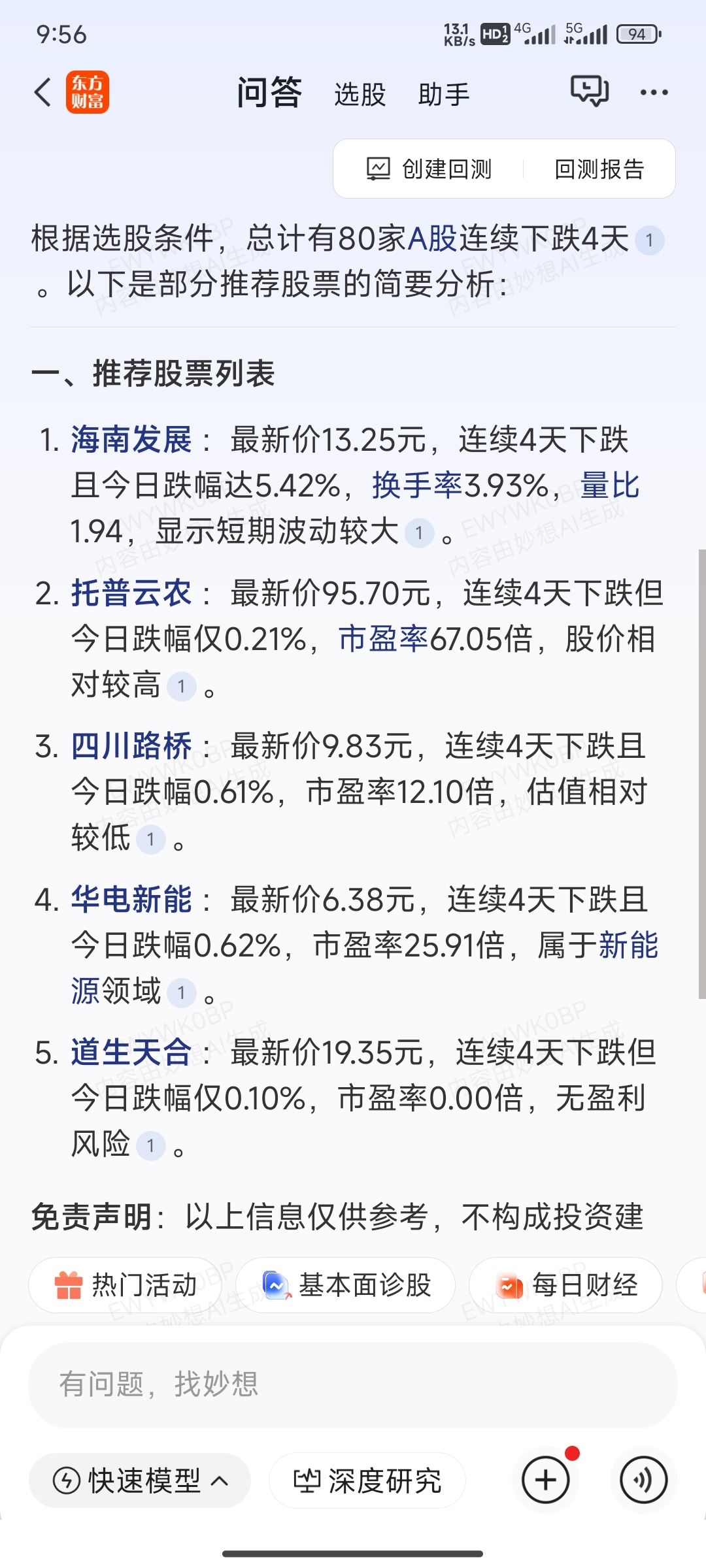 $万马股份(SZ002276)$ 四千多只股票,只有80家连跌4天