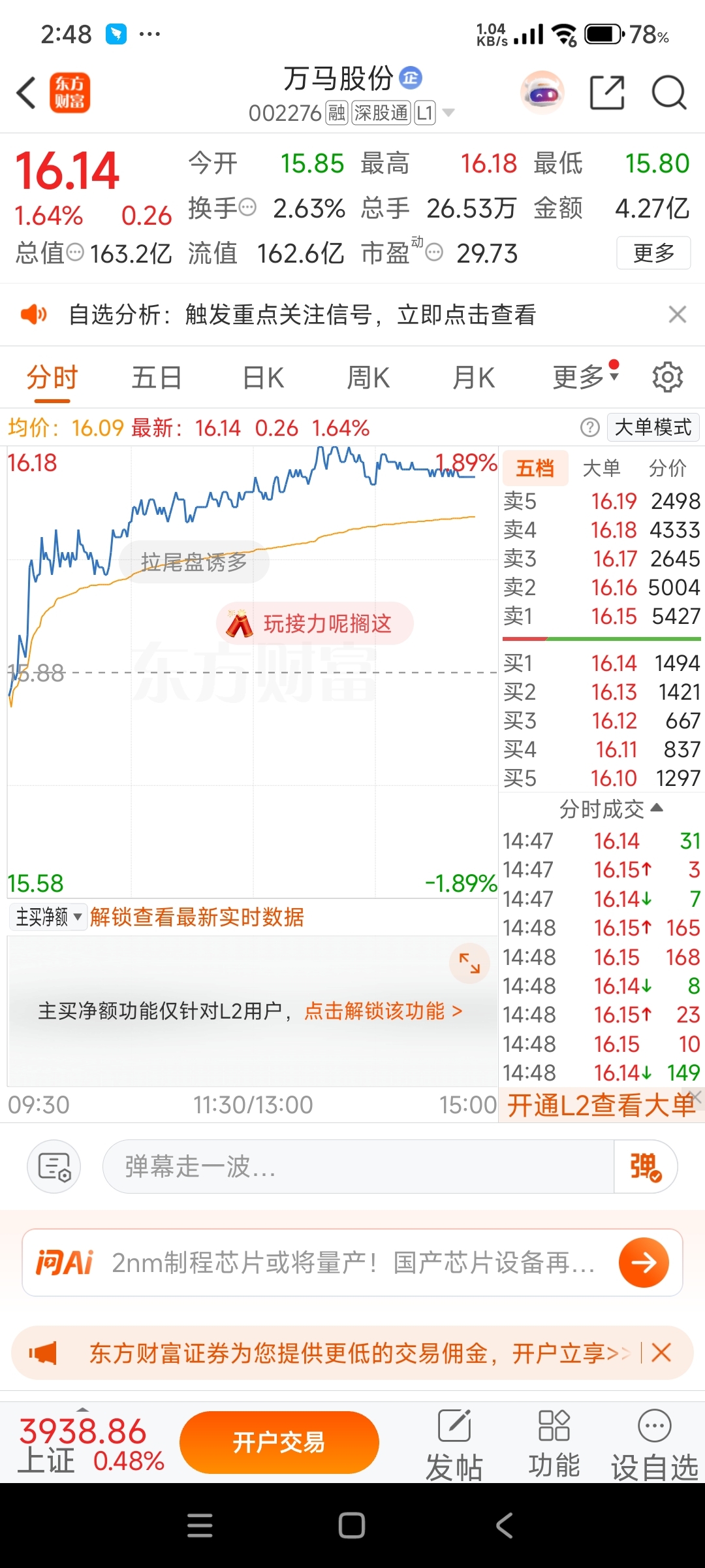$万马股份(SZ002276)$ 看看上面卖盘的量你就知道怎么回事了