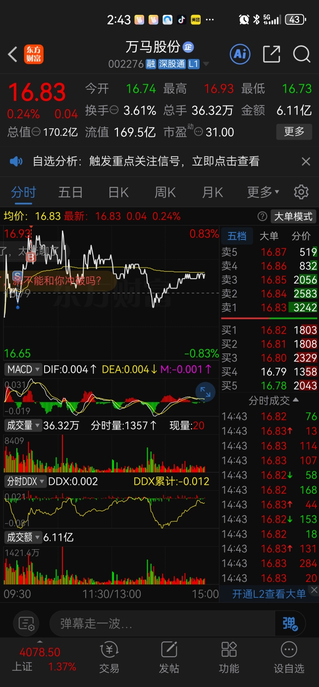 $万马股份(SZ002276)$ 今天做了个t欧耶