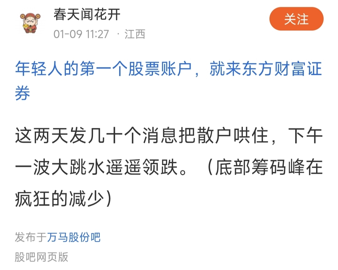 温馨提示: 1.根据《证券法》规定,禁止编造、传播虚假信息或者误导性信息,扰乱证券市场;2.用户在本社区发表的所有资料、言论等仅代表个人观点,与本网站立场无关,不对您构成任何投资建议。用户应基于自己的独立判断,自行决定证券投资并承担相应风险。《东方财富社区管理规定》
