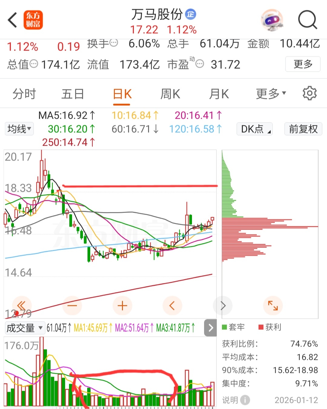 万马股份的基本面主力资金研究比较透彻了,我们投资人就研究大资金的成交量情况就可以了!近期万马股份成交量上涨到18元区域应该没有啥问题!但要突破创新高,那要持续放量才行!